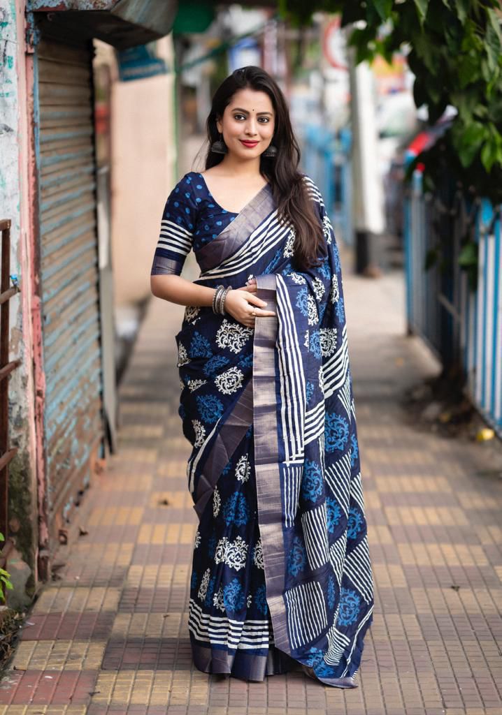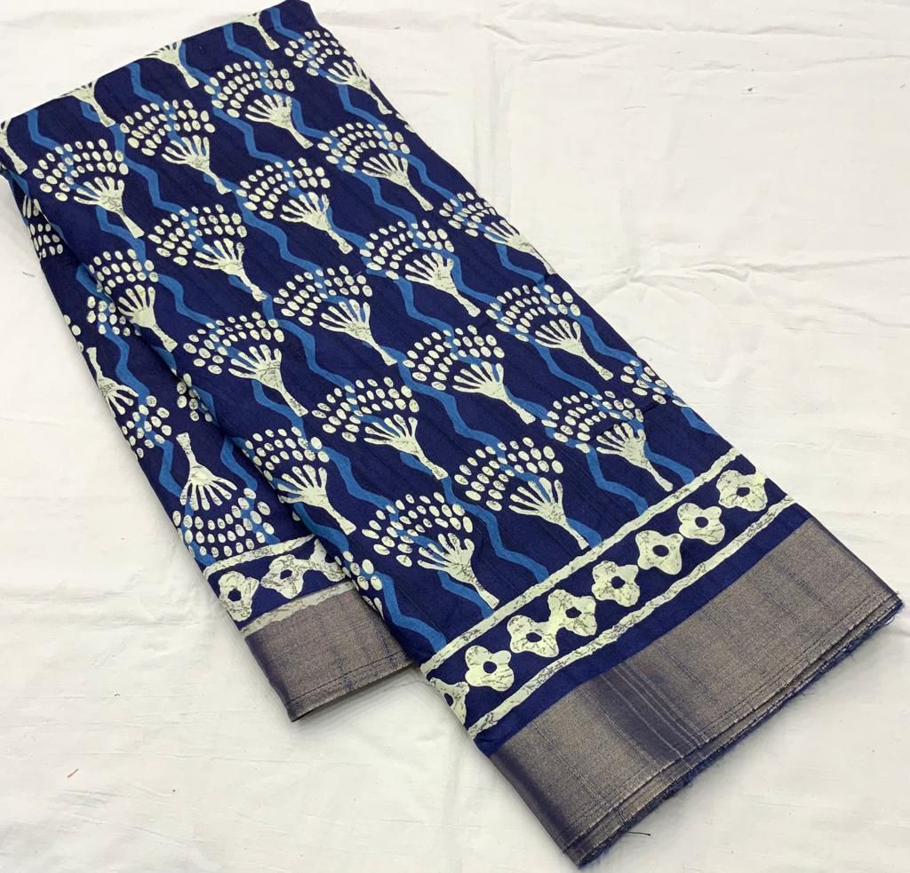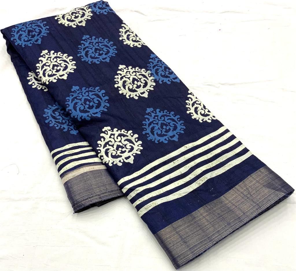 Soft Silk Slub Saree with Batik Print Design | Ethnic Printed Saree with Matching Blouse β 6.3 Meters