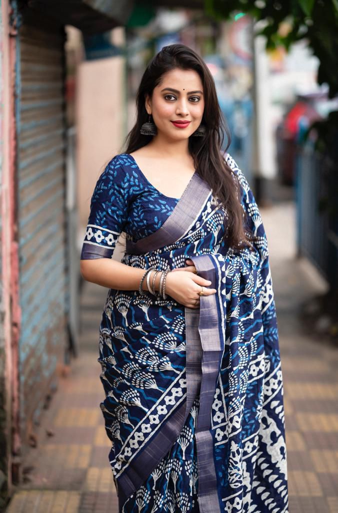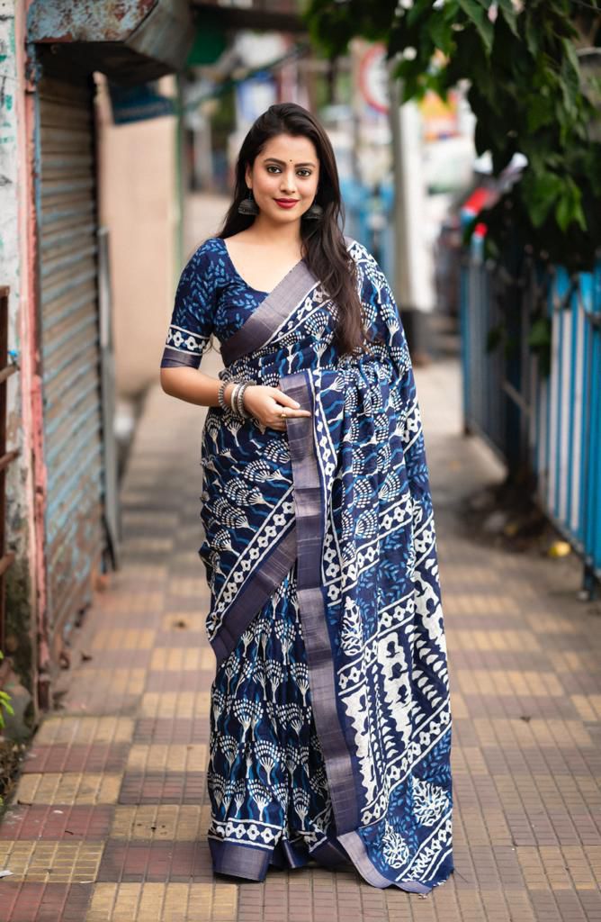 This saree comes with a matching batik printed blouse, completing your look with effortless charm.