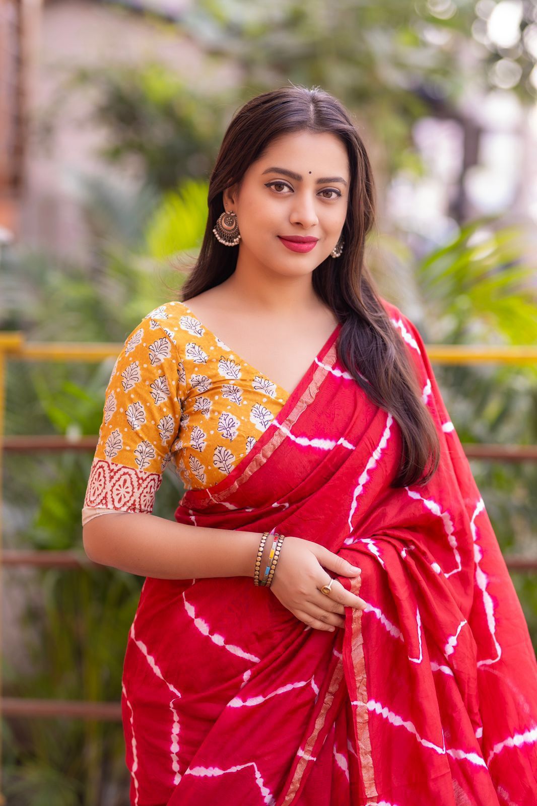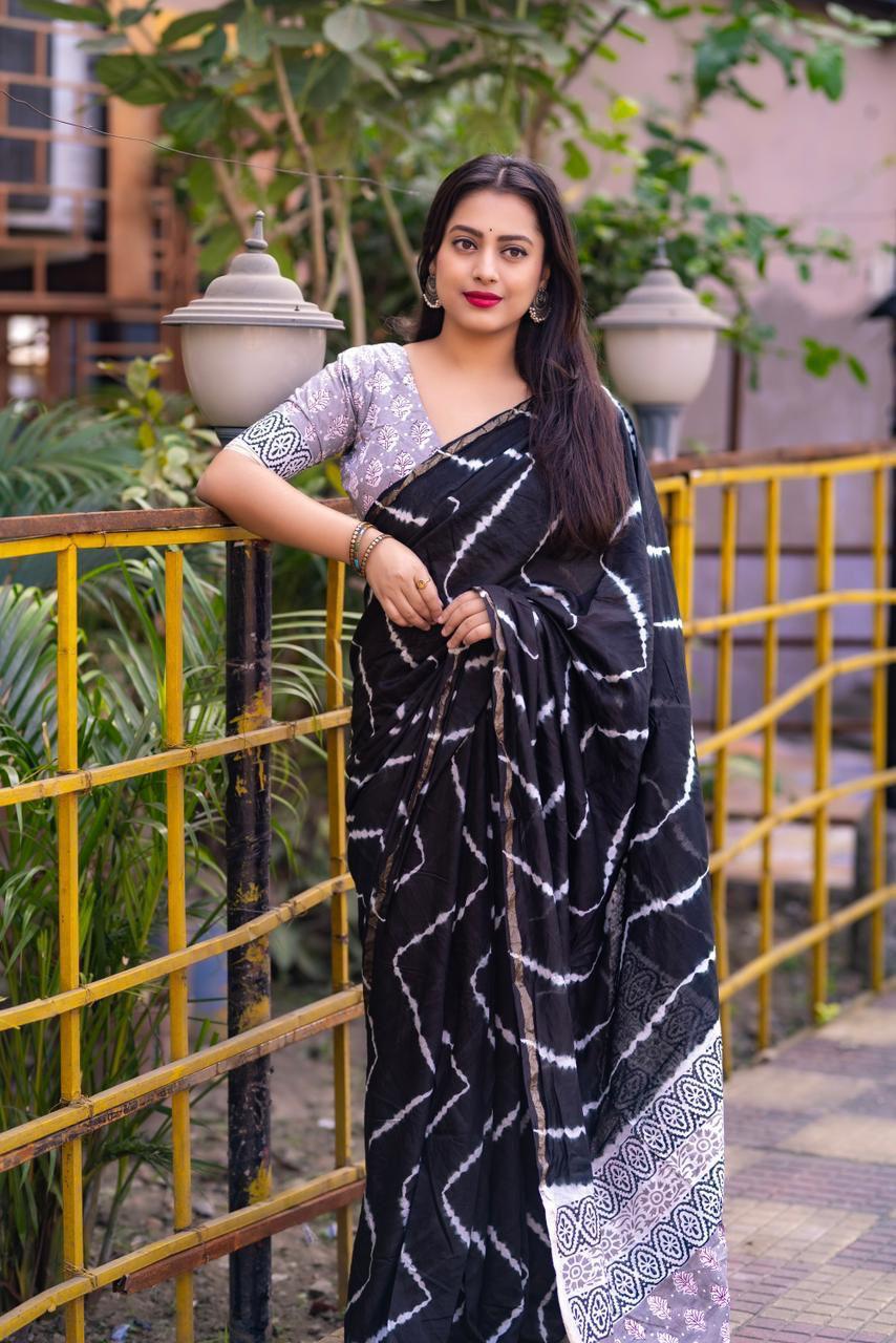 Work: Leheriya Tie-Dye with Ajrakh Printed Pallu