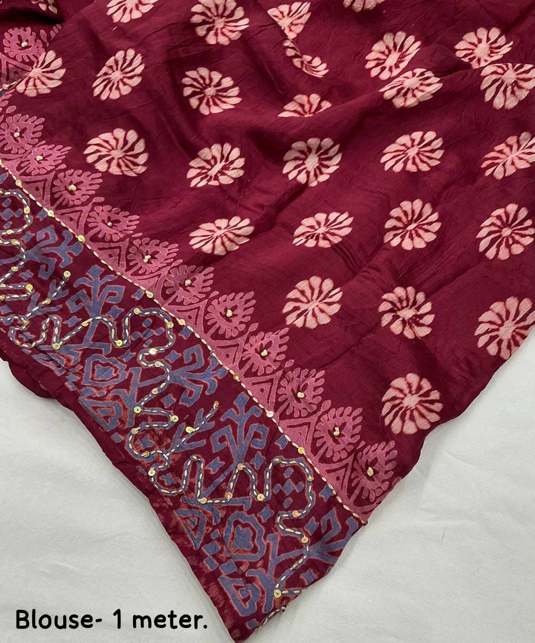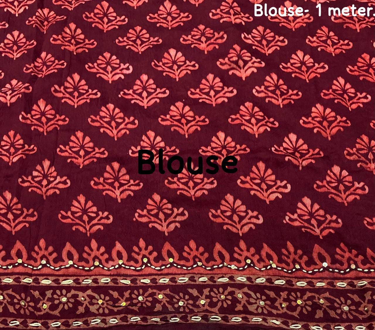 Blouse: Matching Pure Chanderi with Ajrakh Print & Hand Kaatha Embroidery on Sleeves (Unstitched)