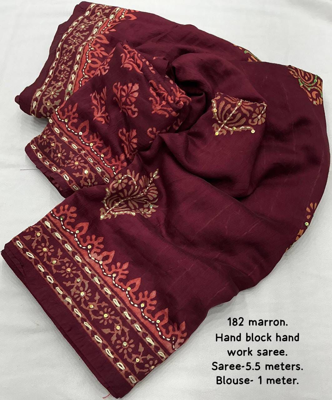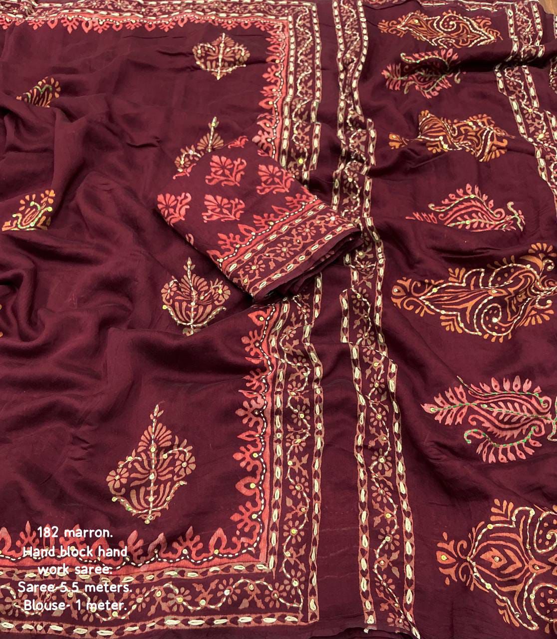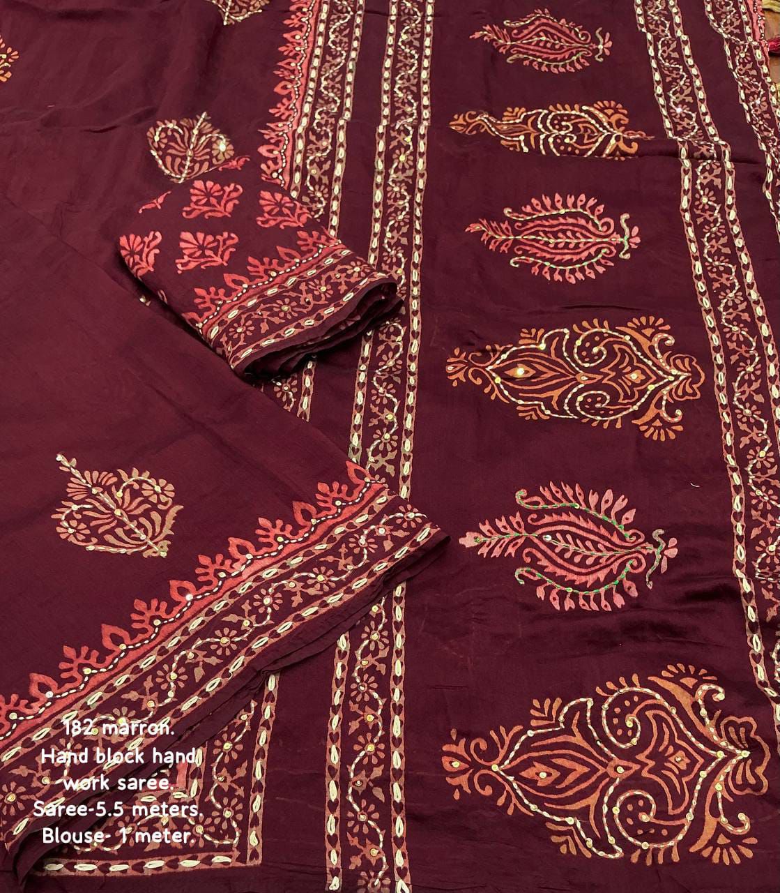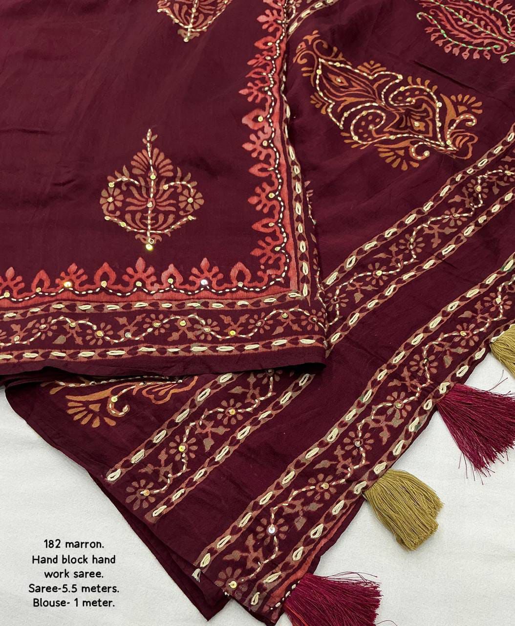 AK-252 Magic Kaatha – Pure Chanderi Cotton Saree with Ajrakh Block Print & Hand Kaatha Embroidery