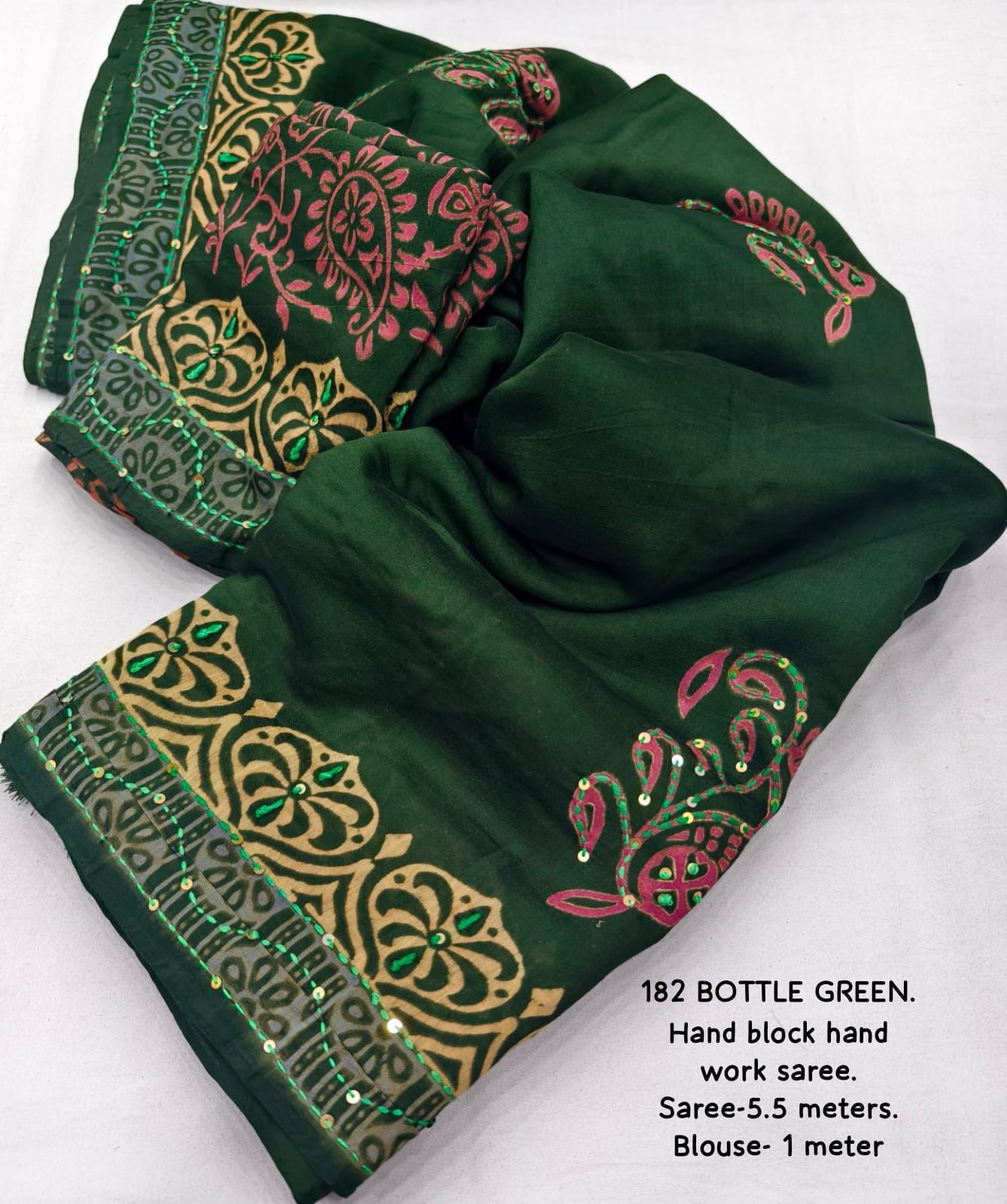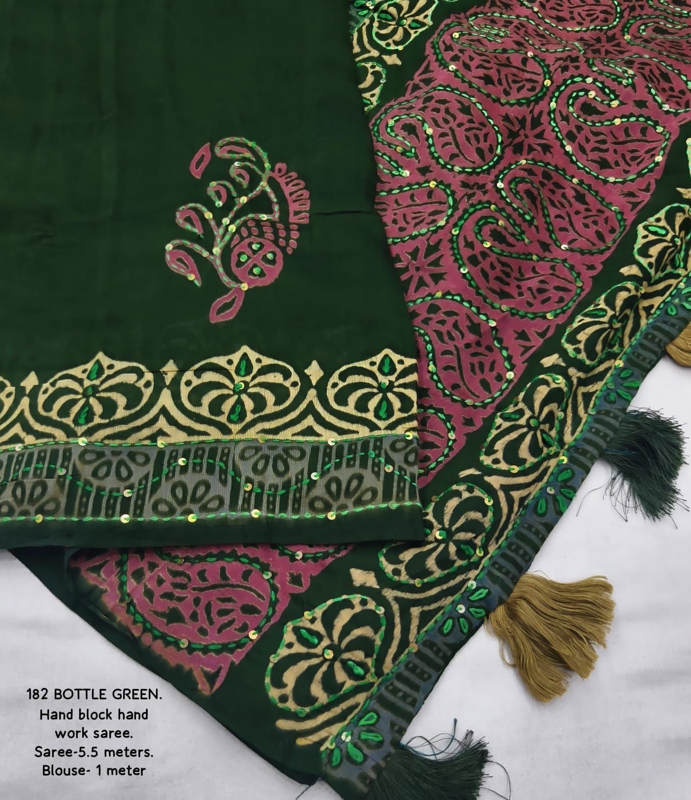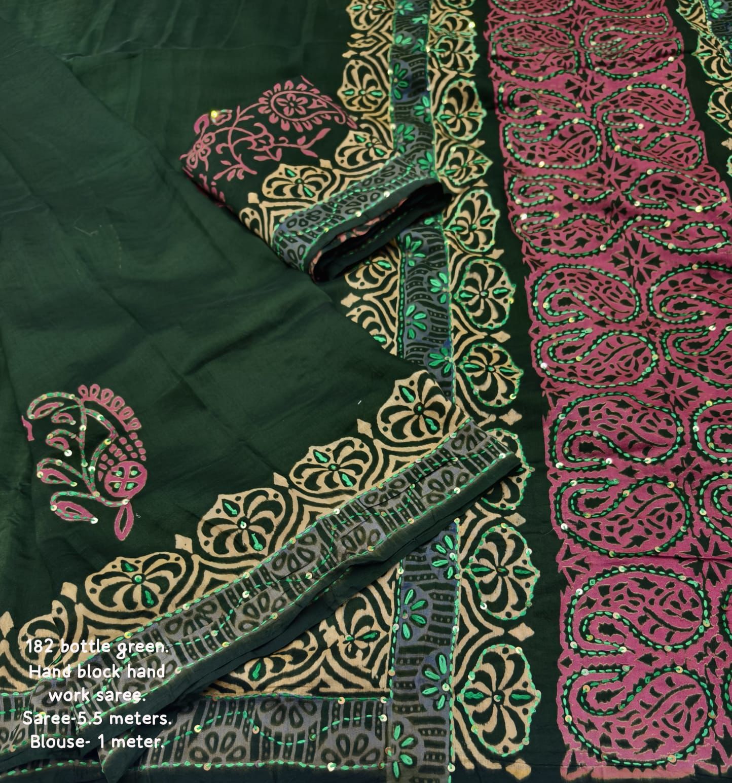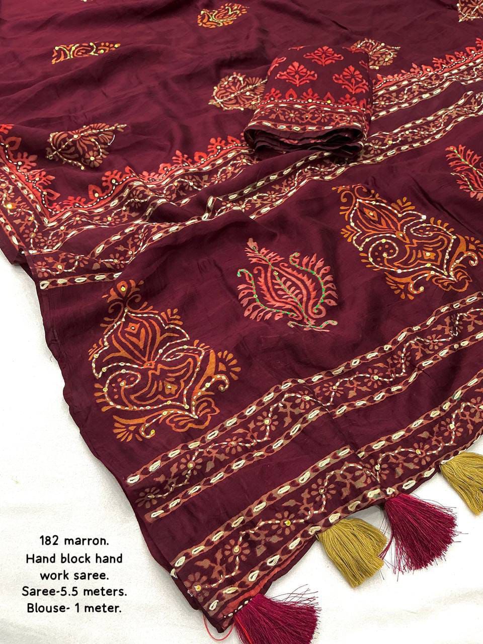 AK-252 Magic Kaatha – Pure Chanderi Cotton Saree with Ajrakh Block Print & Hand Kaatha Embroidery