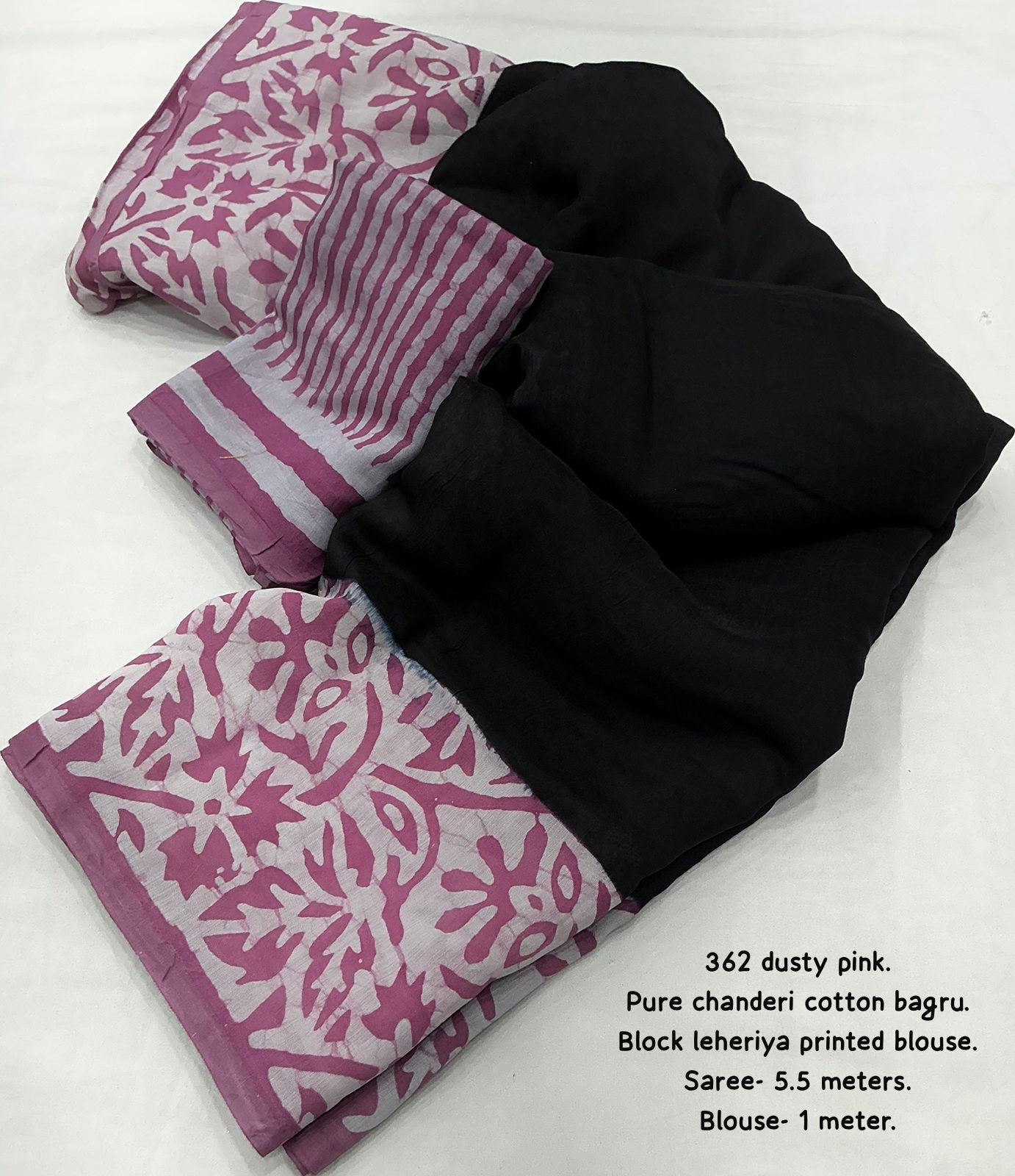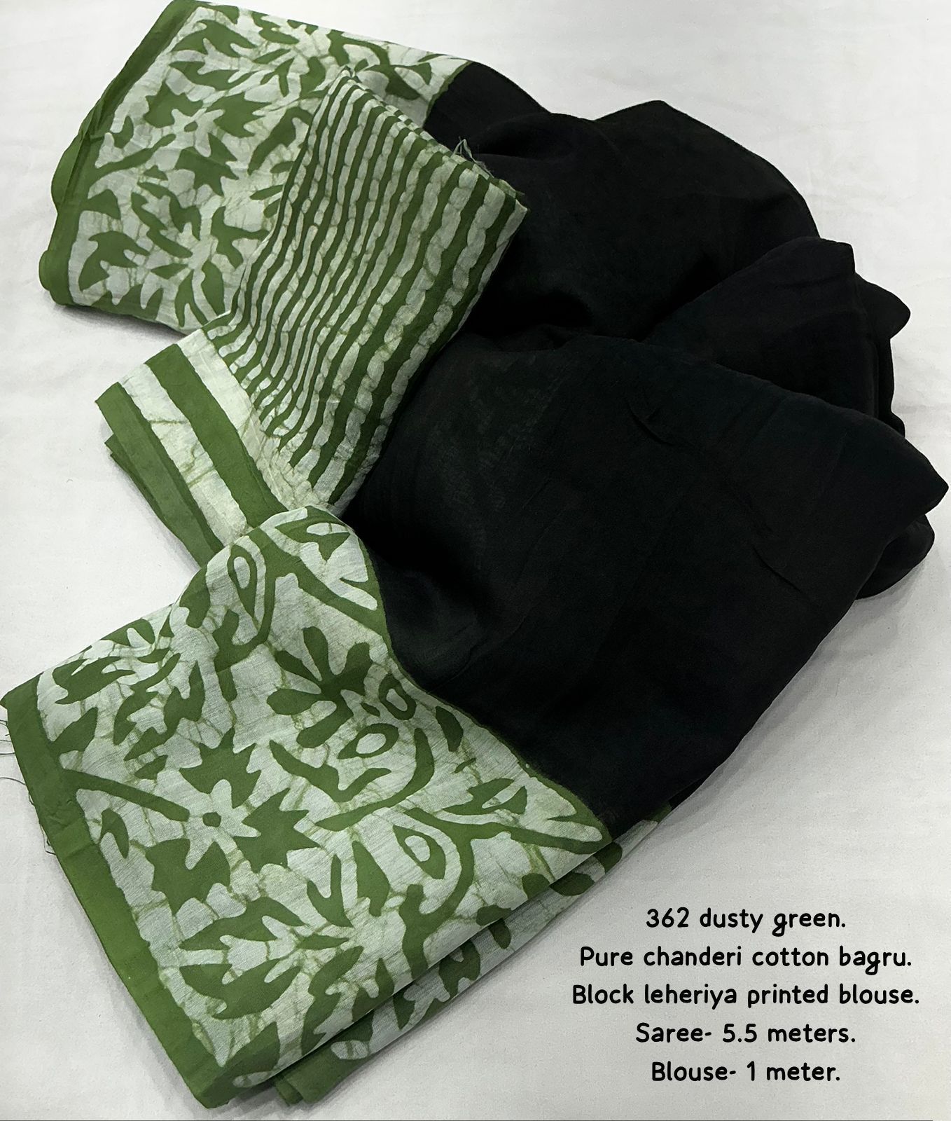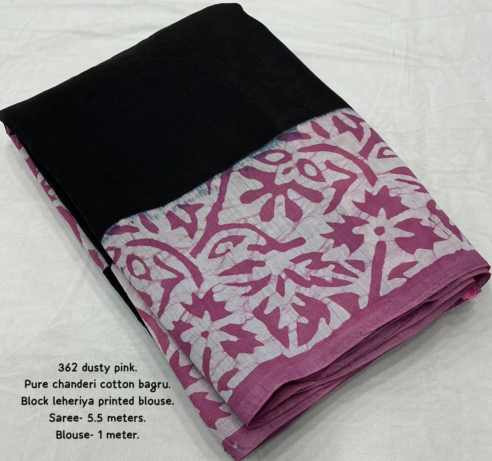 Add timeless elegance to your ethnic wardrobe with this Bagru Black Saree featuring classic leheriya block prints. Crafted with care, the saree showcases a graceful zari pattu woven border and soft cotton tassels on the pallu, making it a perfect blend of traditional artistry and everyday comfort.