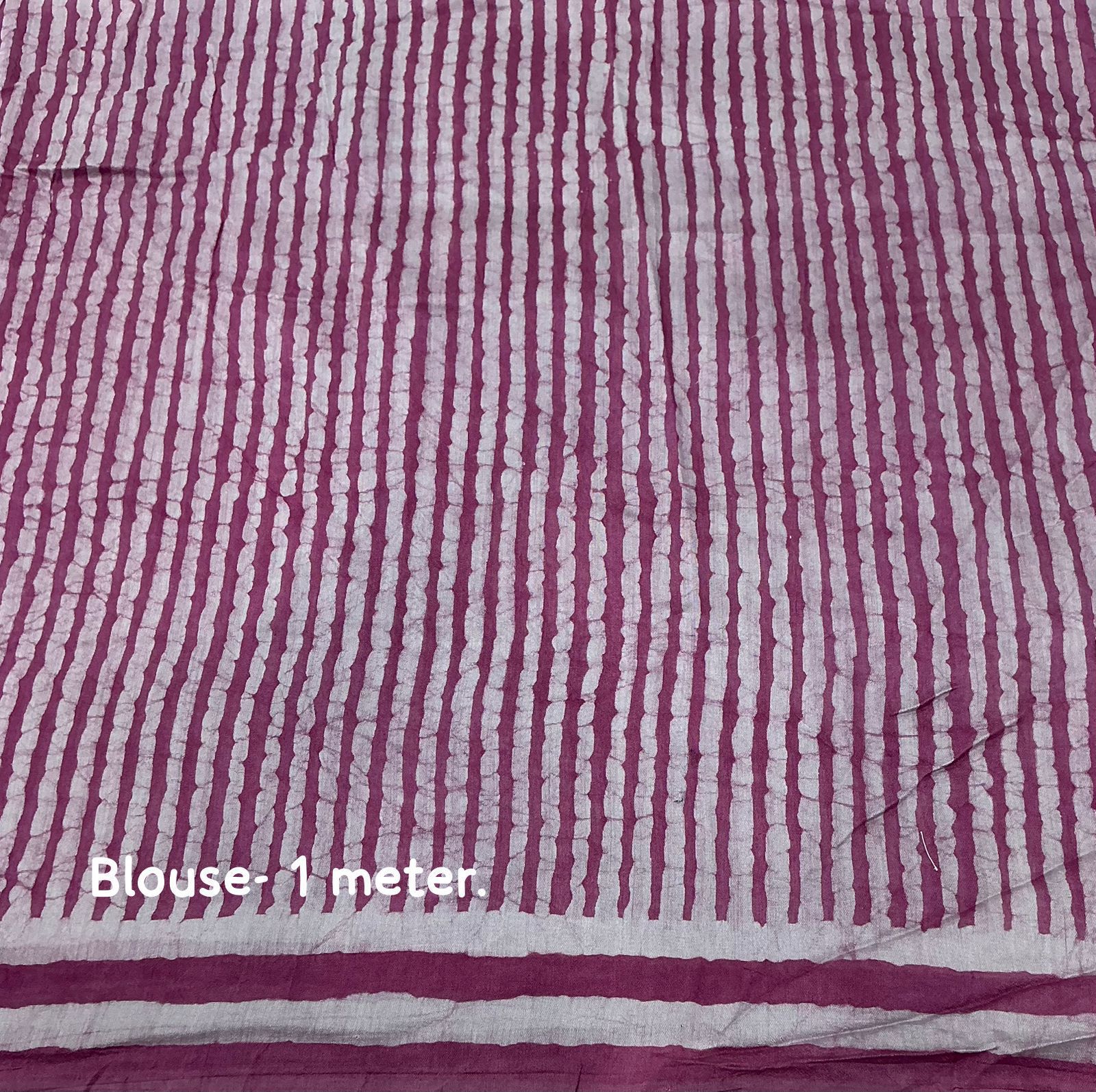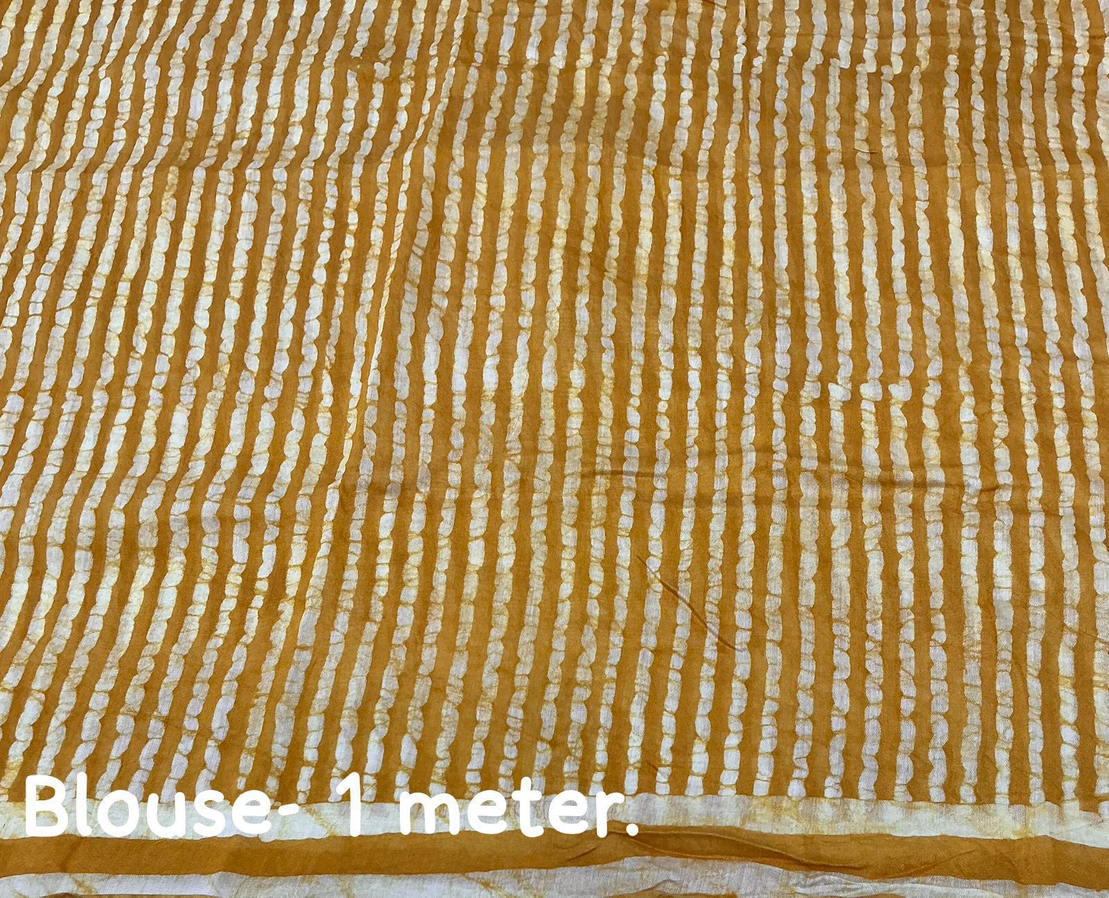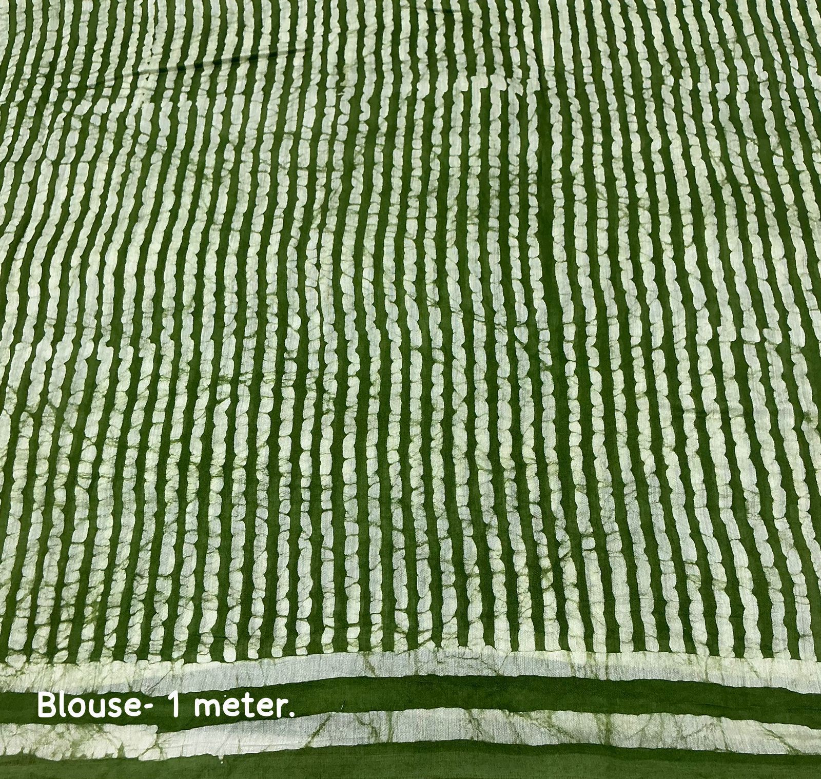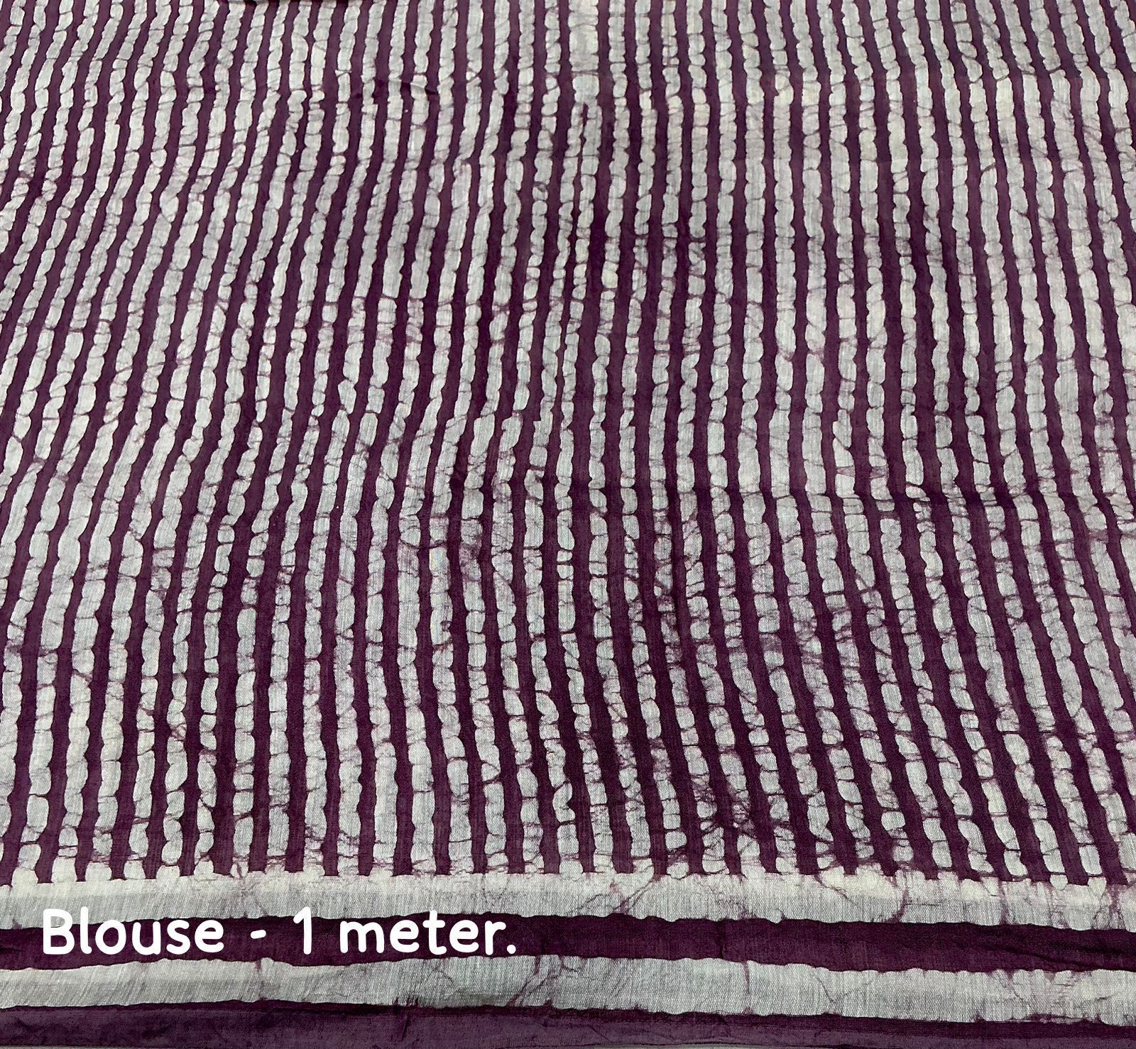 Add timeless elegance to your ethnic wardrobe with this Bagru Black Saree featuring classic leheriya block prints. Crafted with care, the saree showcases a graceful zari pattu woven border and soft cotton tassels on the pallu, making it a perfect blend of traditional artistry and everyday comfort.
