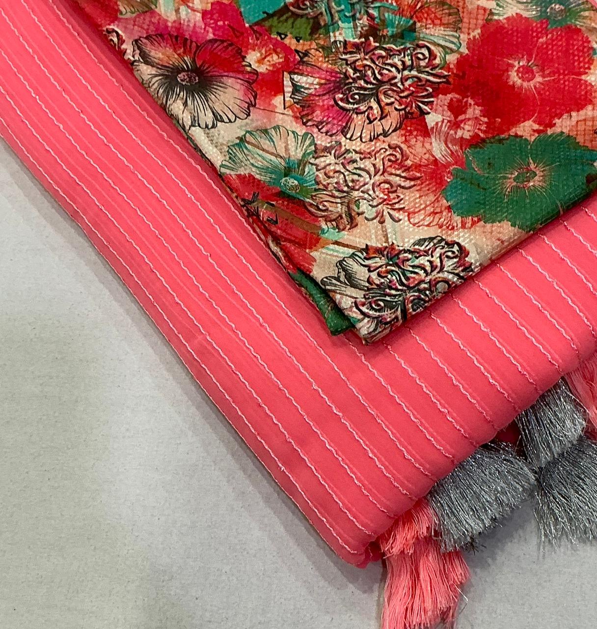 AK-516 Janki Georgette – Soft Georgette Saree with Thread Embroidery & Jute Silk Printed Blouse