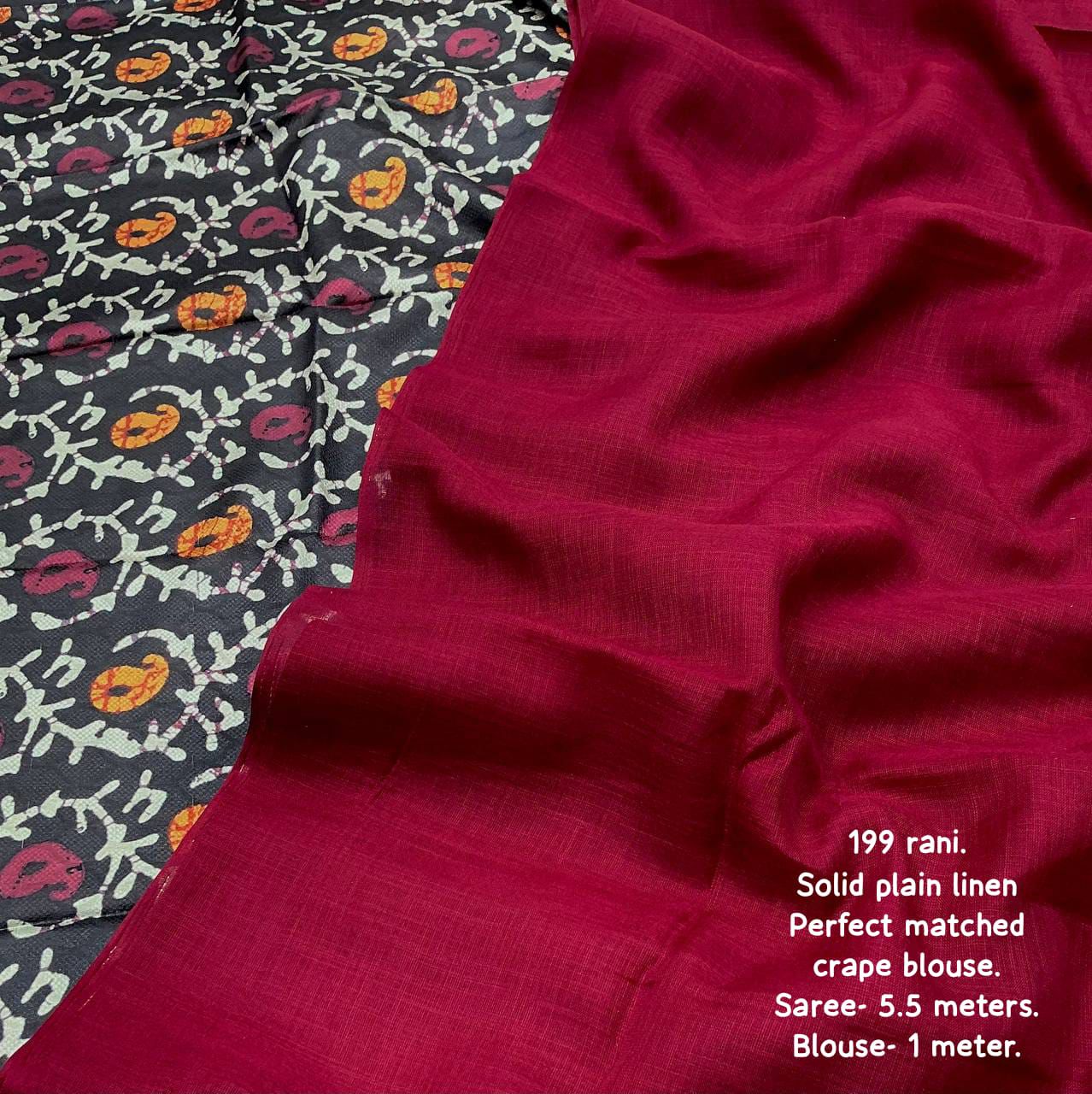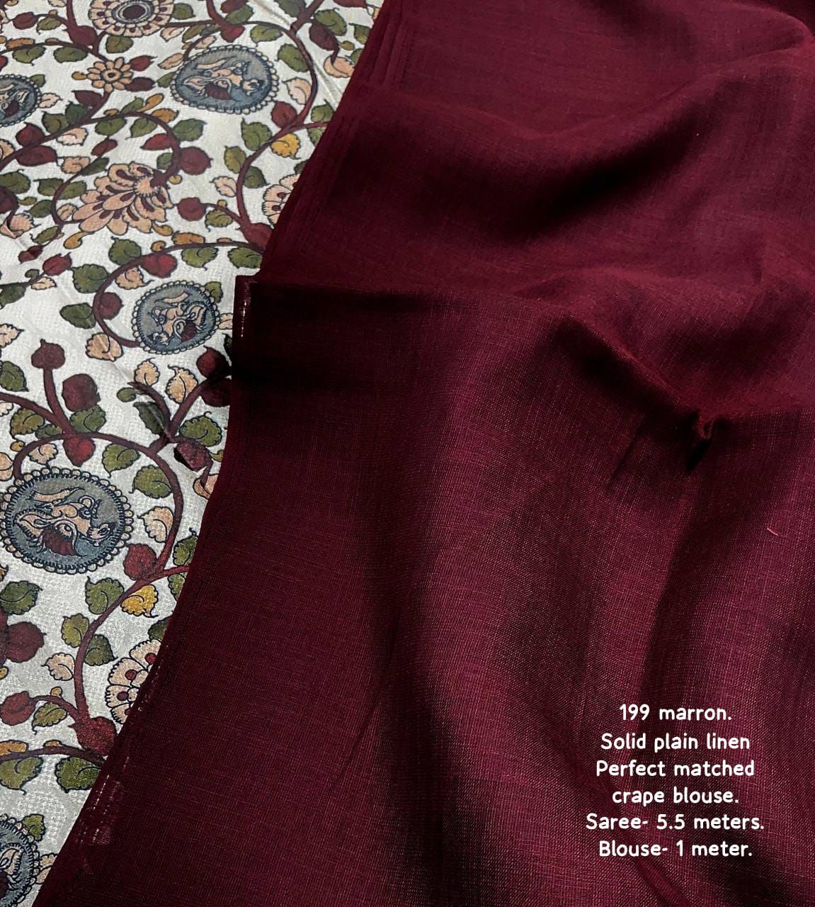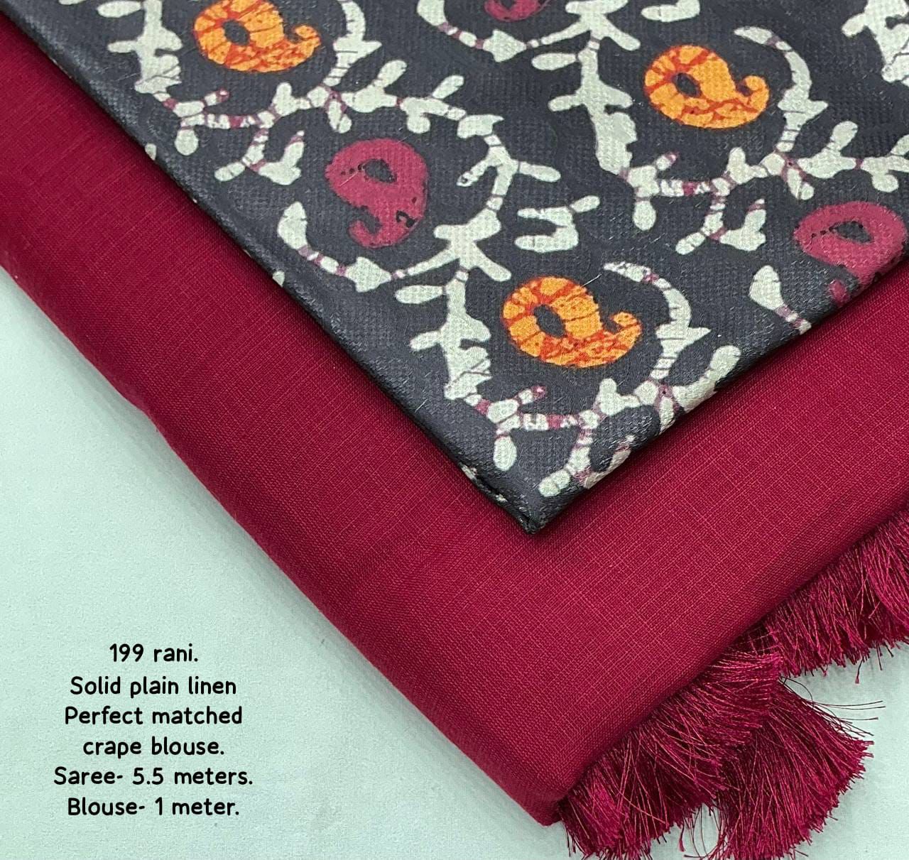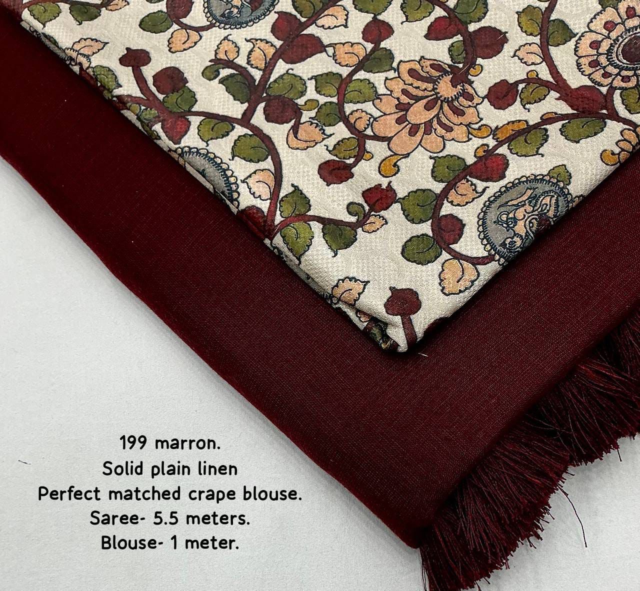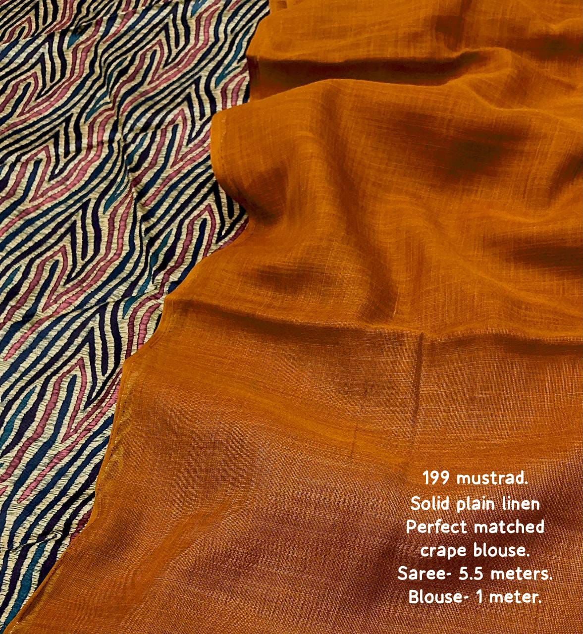 Add a refined charm to your wardrobe with this premium soft linen saree in a rich dark shade. Designed for comfort and grace, the saree is finished with delicate cotton tassels on the pallu, and comes with a perfectly matched self-tilak woven crepe silk blouse for a complete and graceful look.