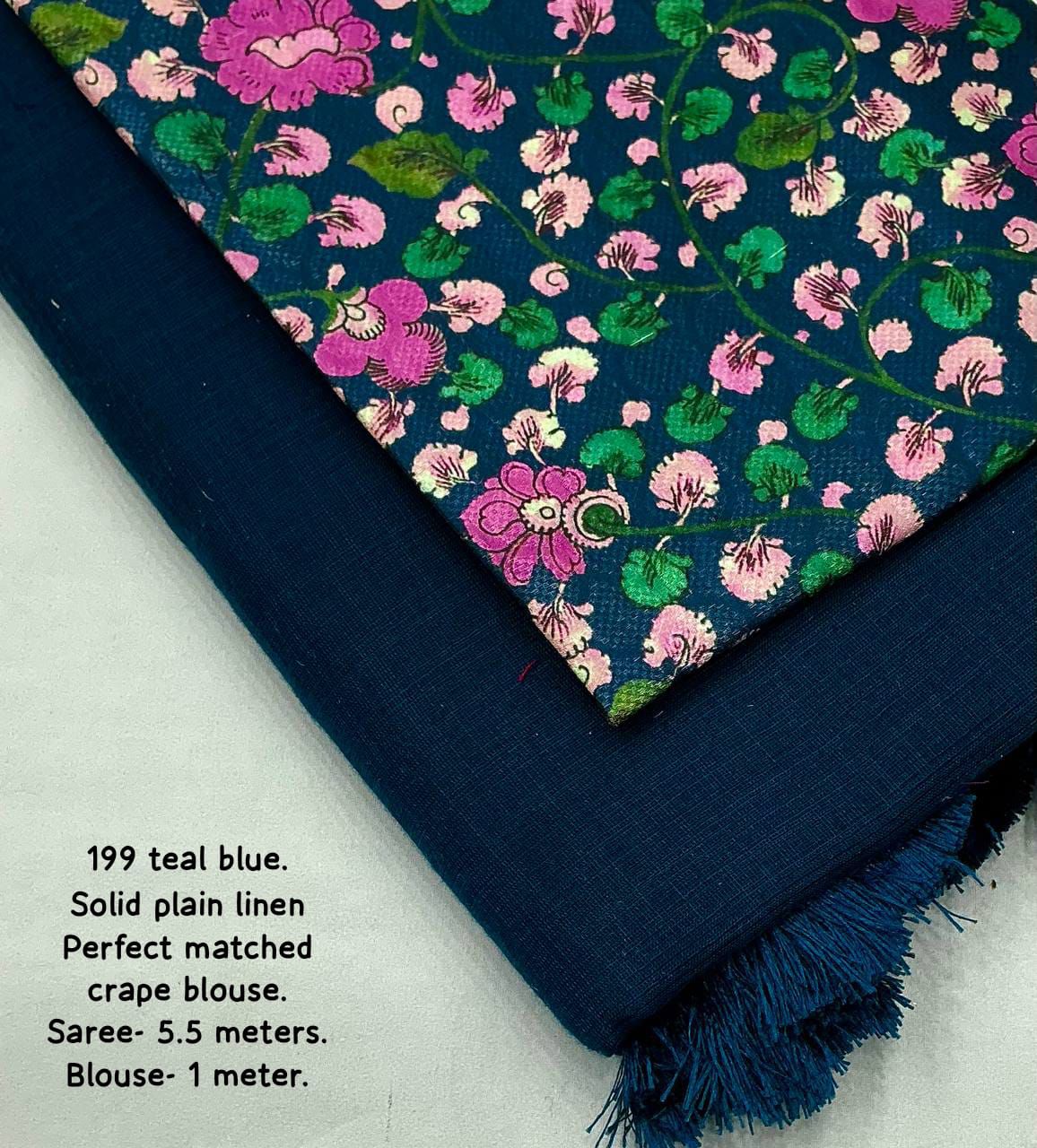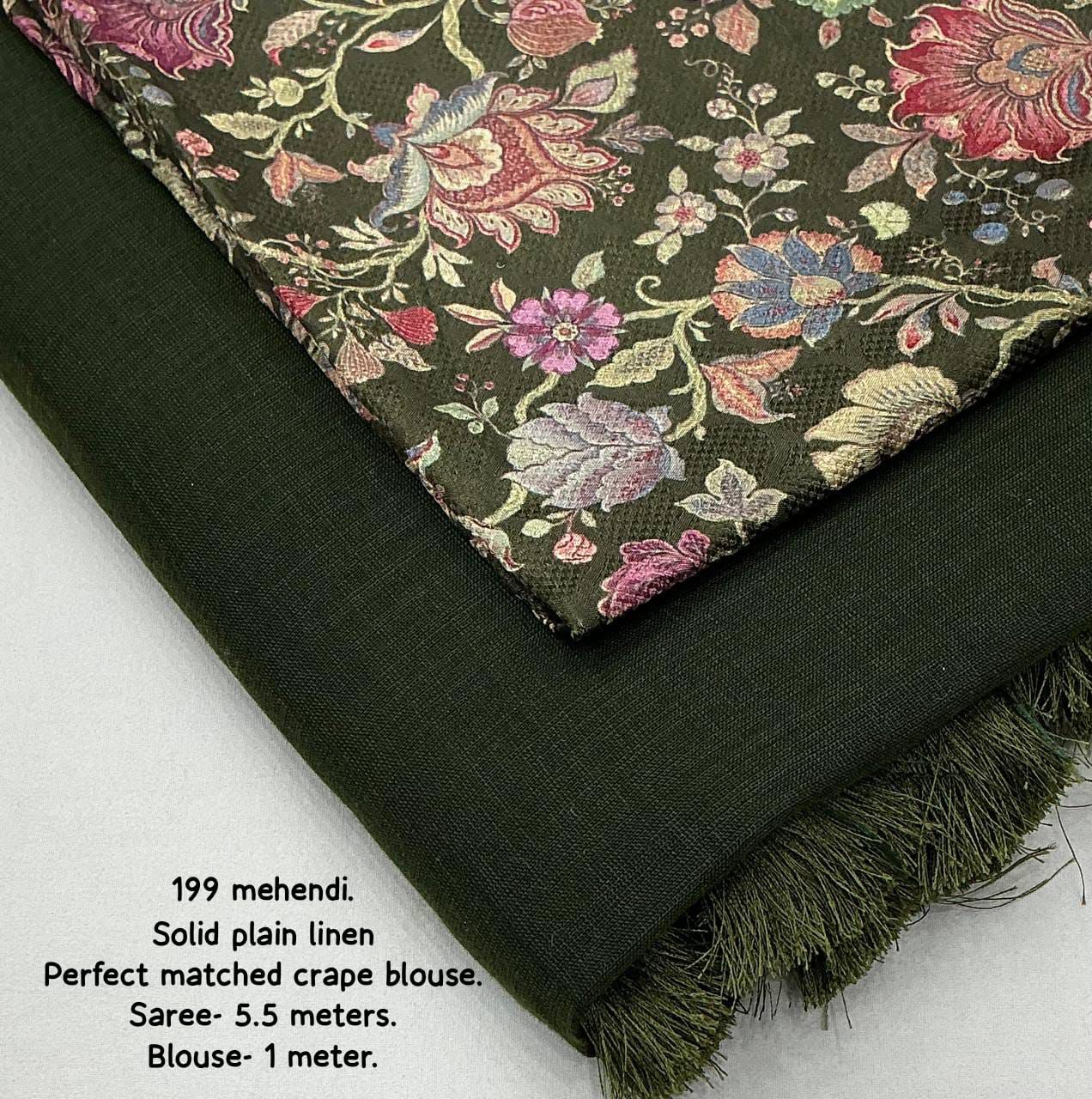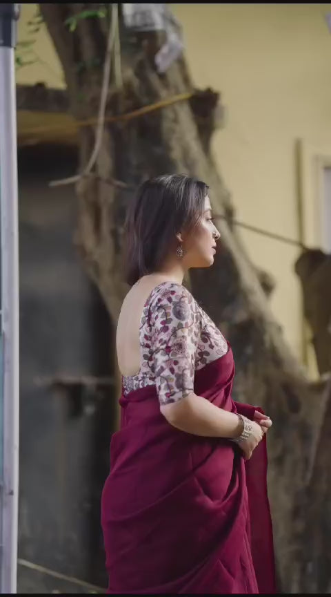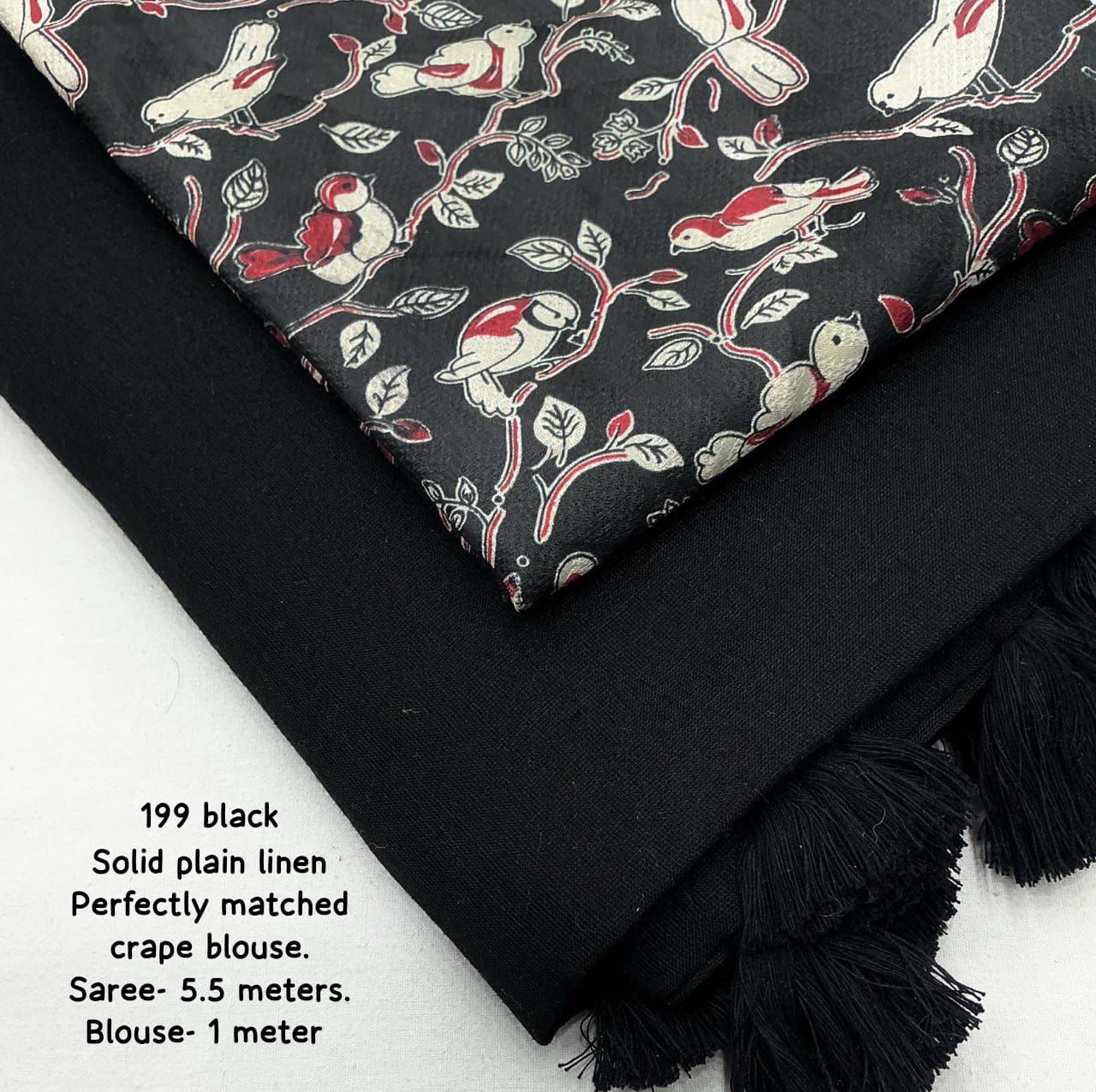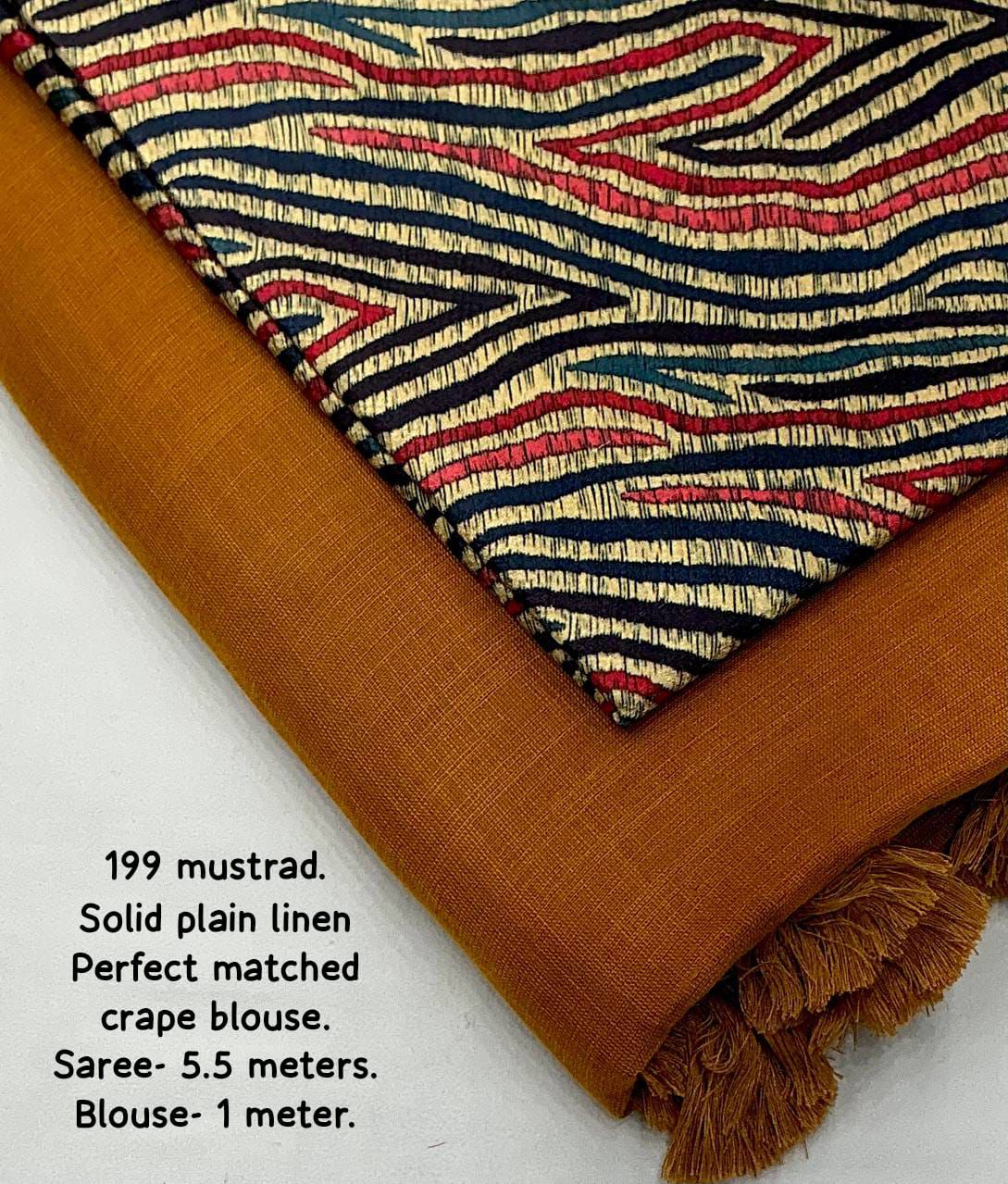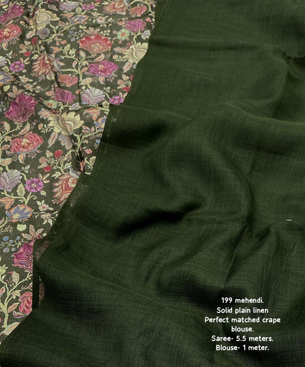 Add a refined charm to your wardrobe with this premium soft linen saree in a rich dark shade. Designed for comfort and grace, the saree is finished with delicate cotton tassels on the pallu, and comes with a perfectly matched self-tilak woven crepe silk blouse for a complete and graceful look.