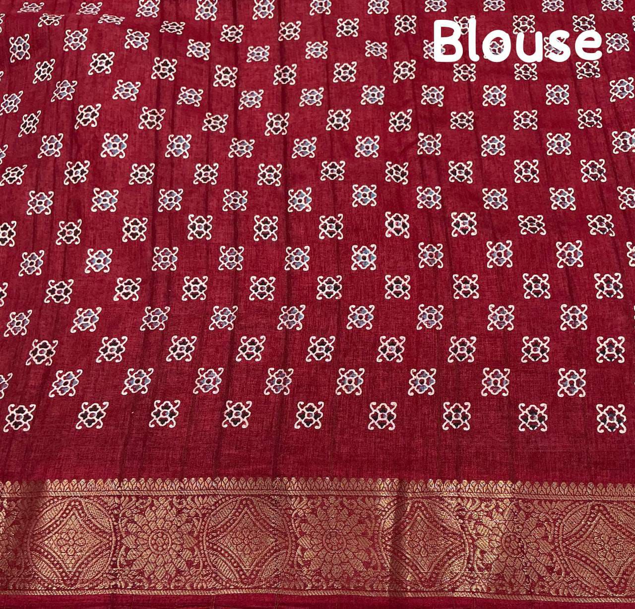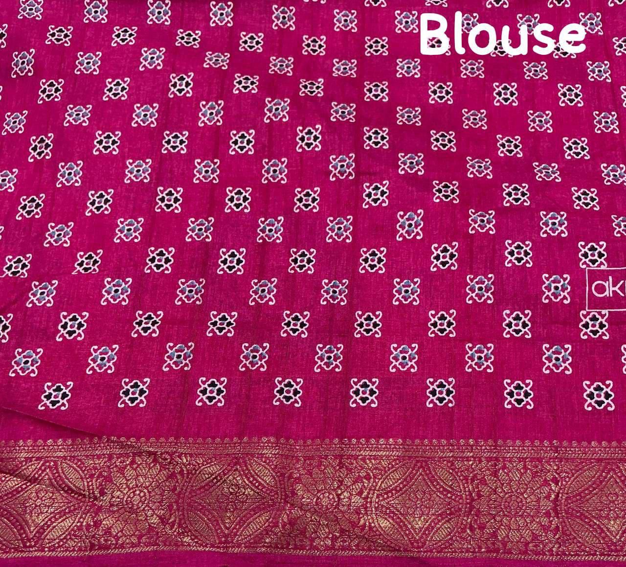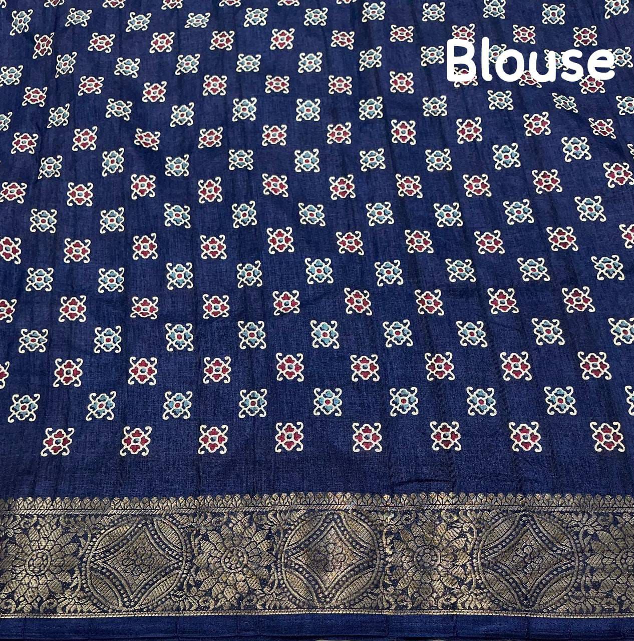 AK – Handloom Ajrakh Slub Silk Saree with Zari Pattu Border & Printed Silk Blouse