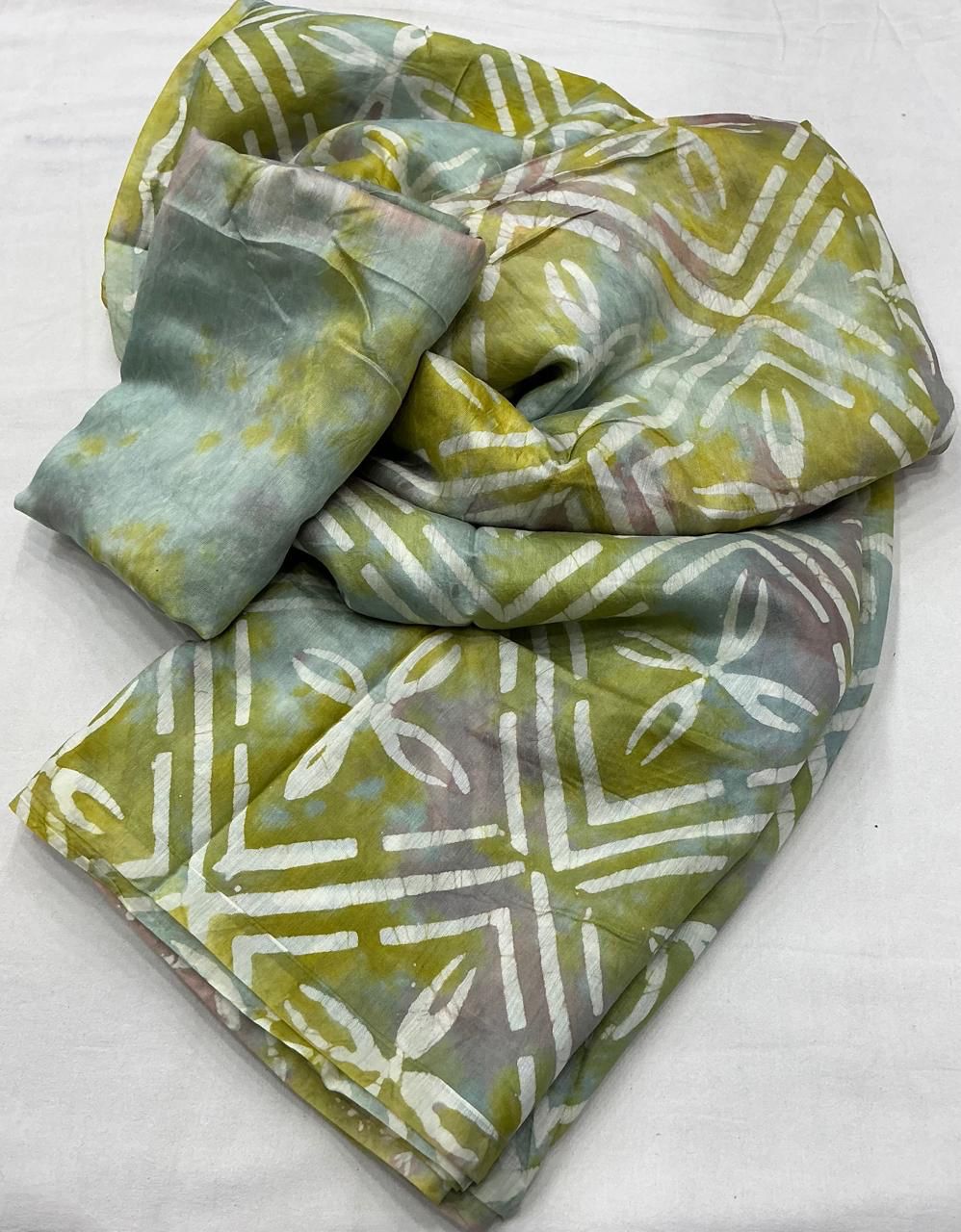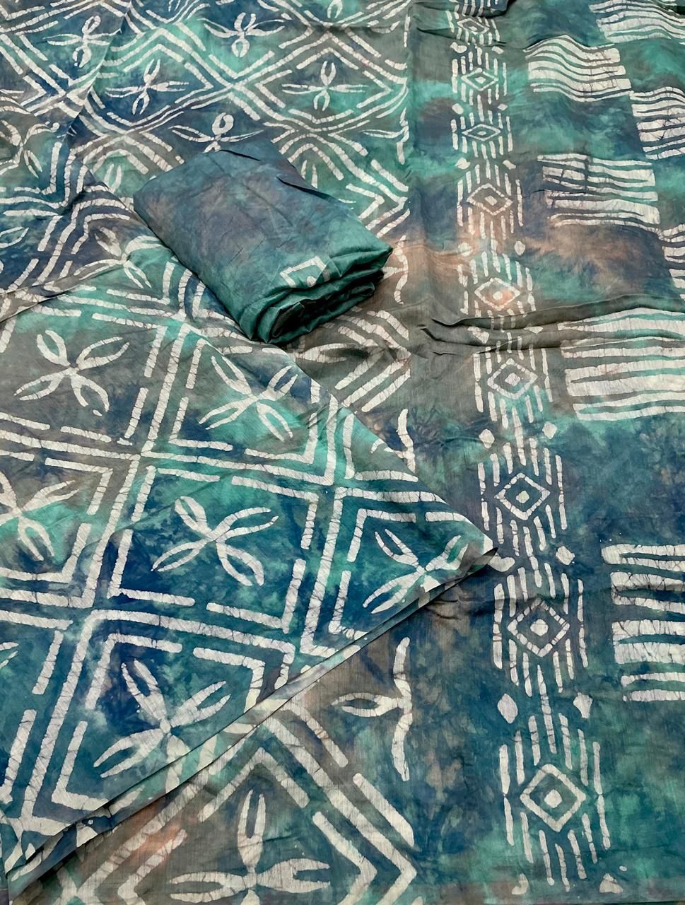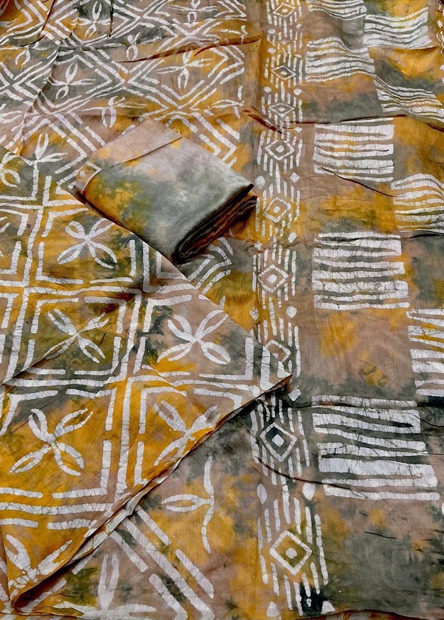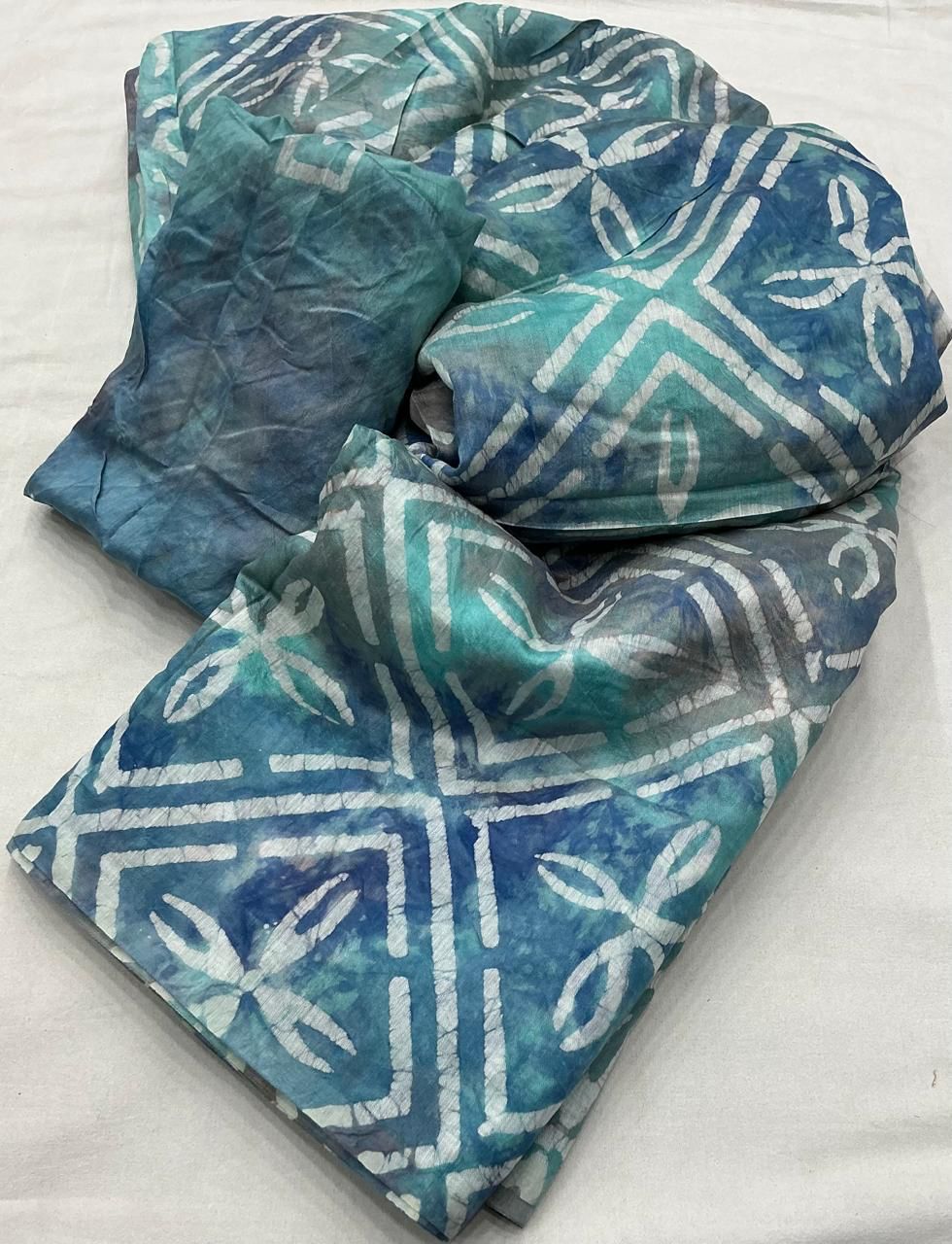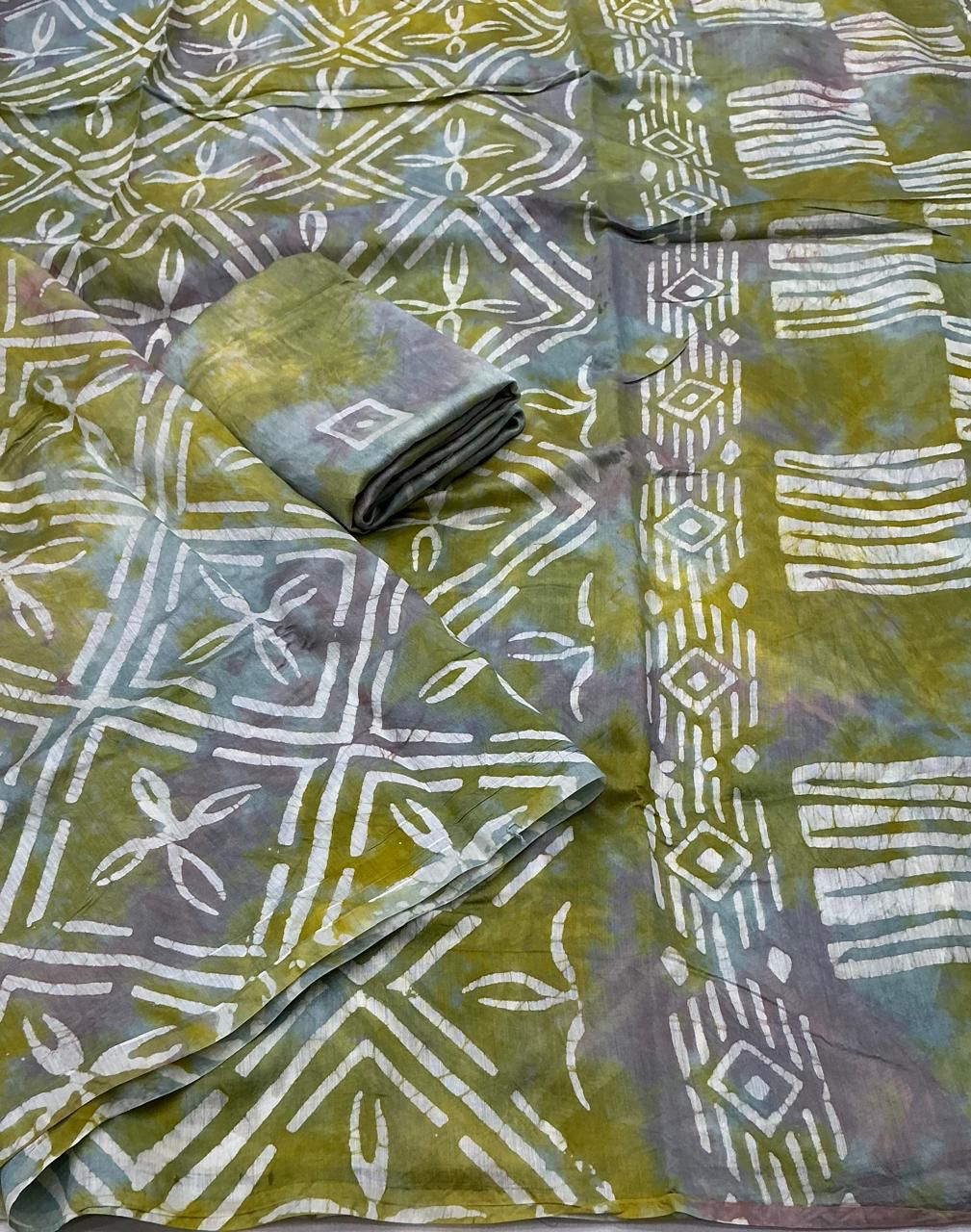 Pure Soft Chanderi Cotton Saree with Spray Dye & Hand Block Print | Cotton Tassels Pallu