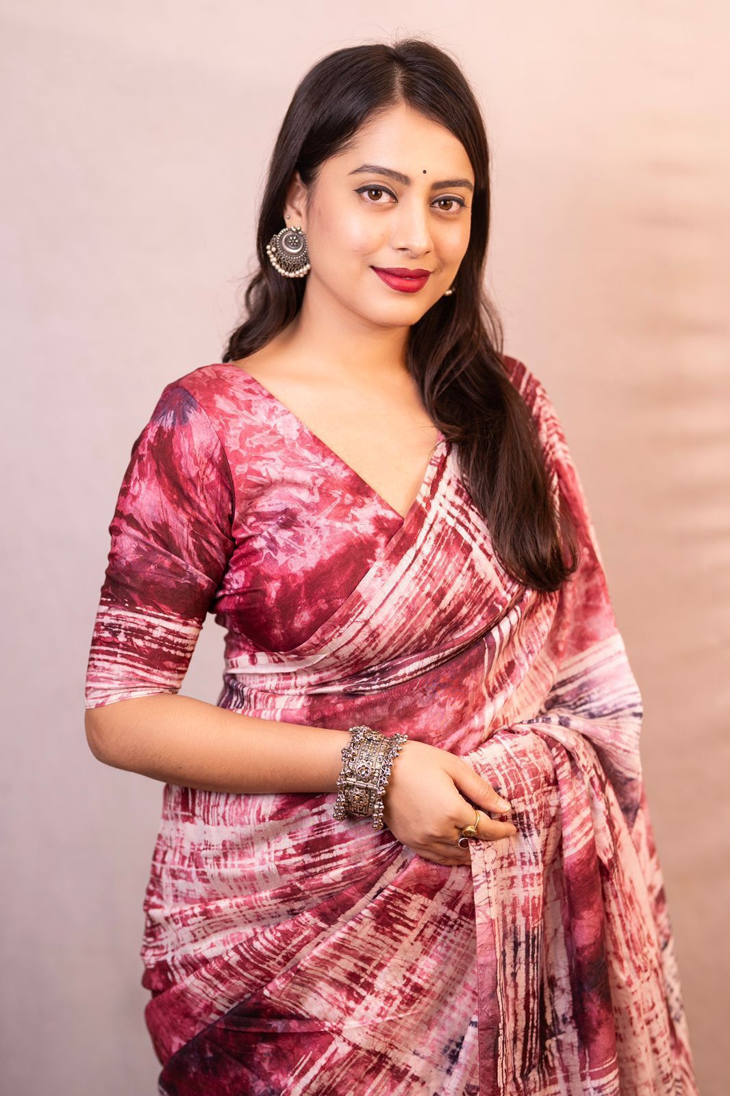 Immerse yourself in wearable art with this pure soft Chanderi cotton saree, featuring a unique spray-dyed base that sets the canvas for intricate hand-block prints. Every fold of the drape reflects the mastery of artisan techniques and an eye for minimal elegance.