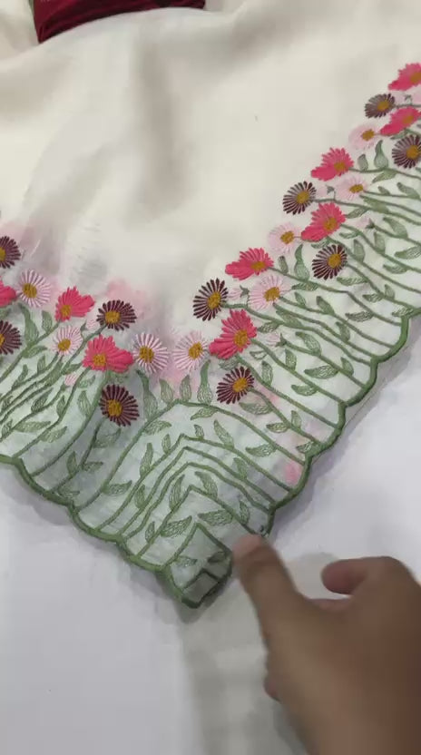 Blouse Fabric: Contrast Phantom Silk with Embroidery (Unstitched)