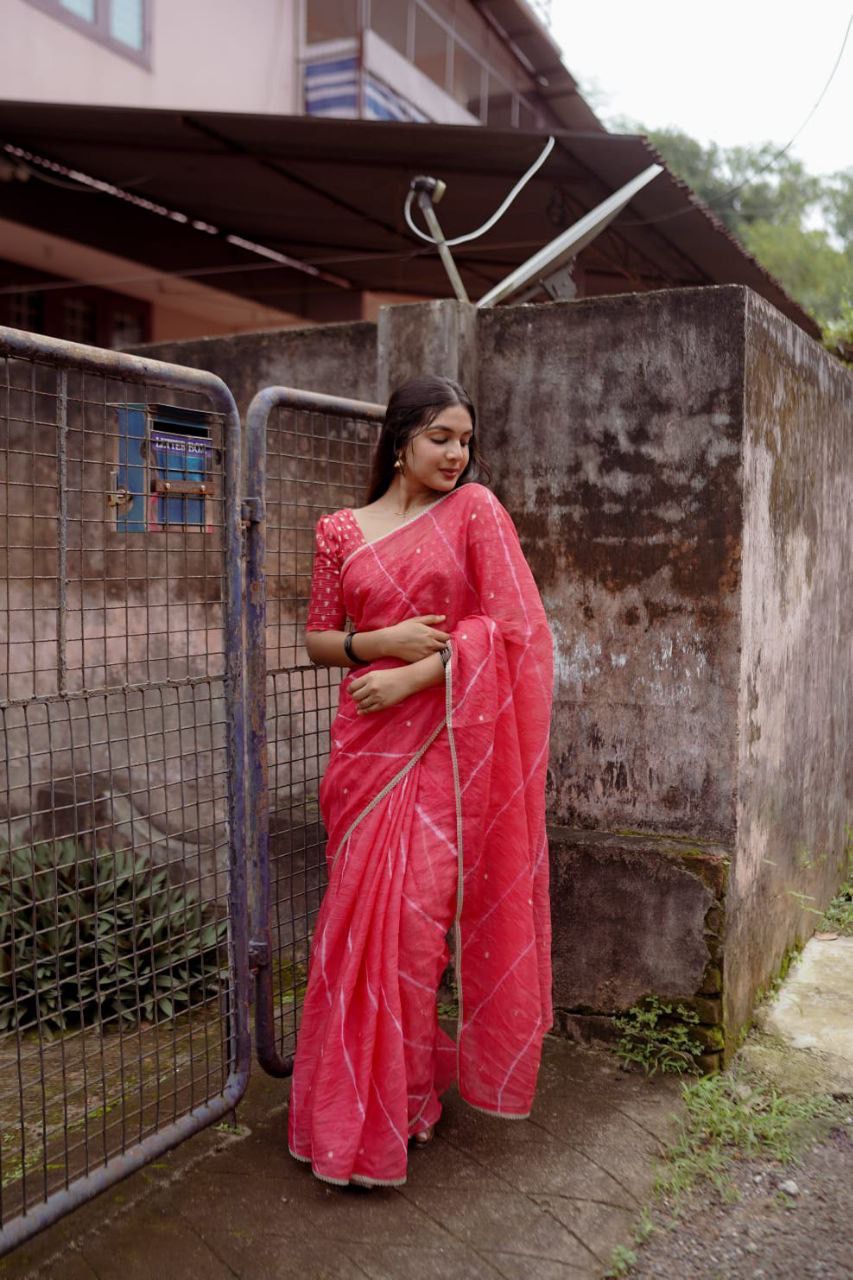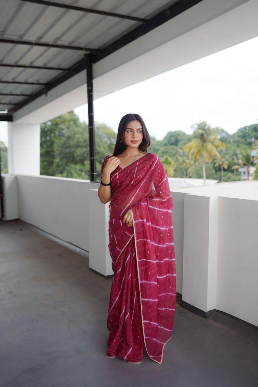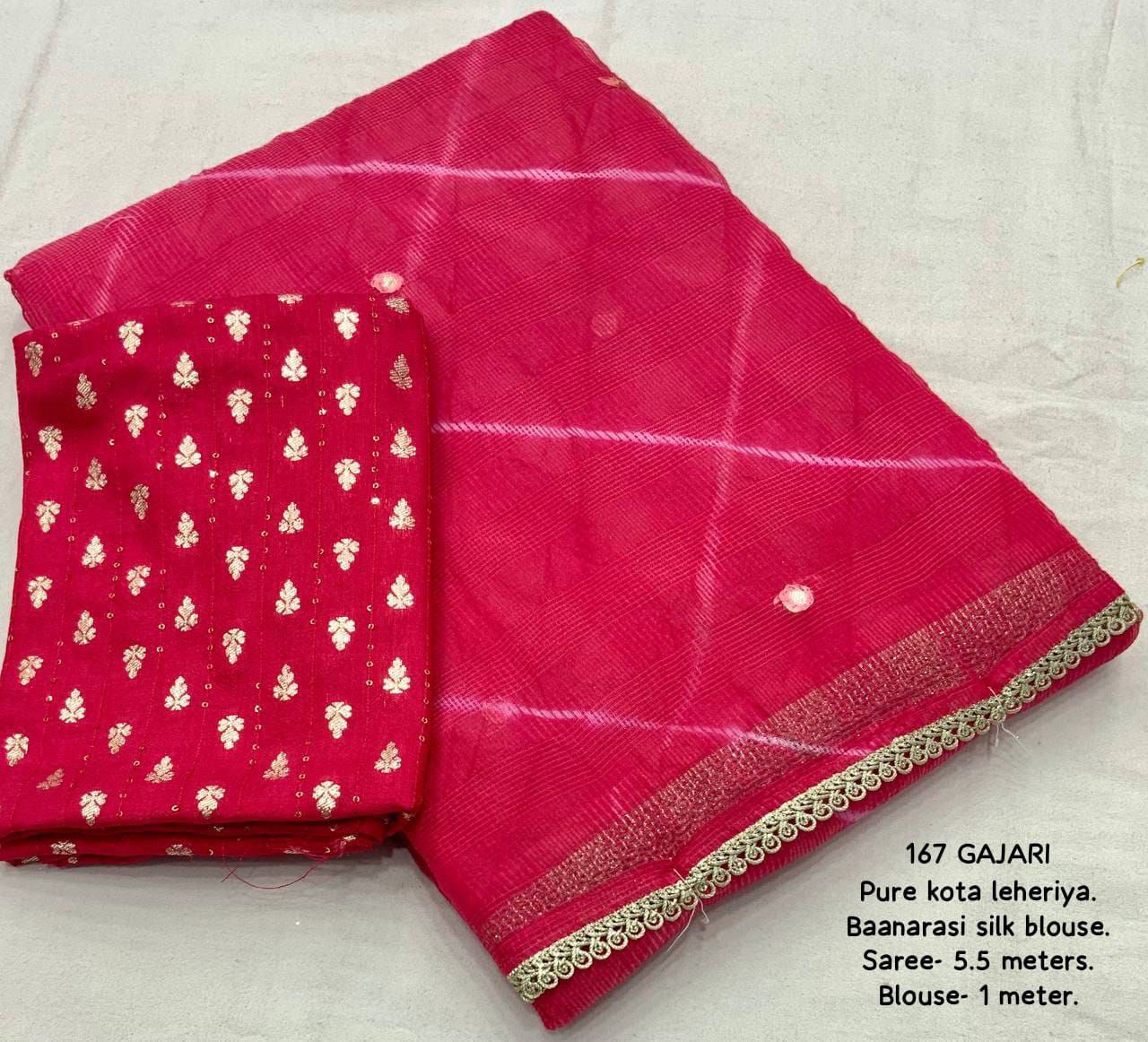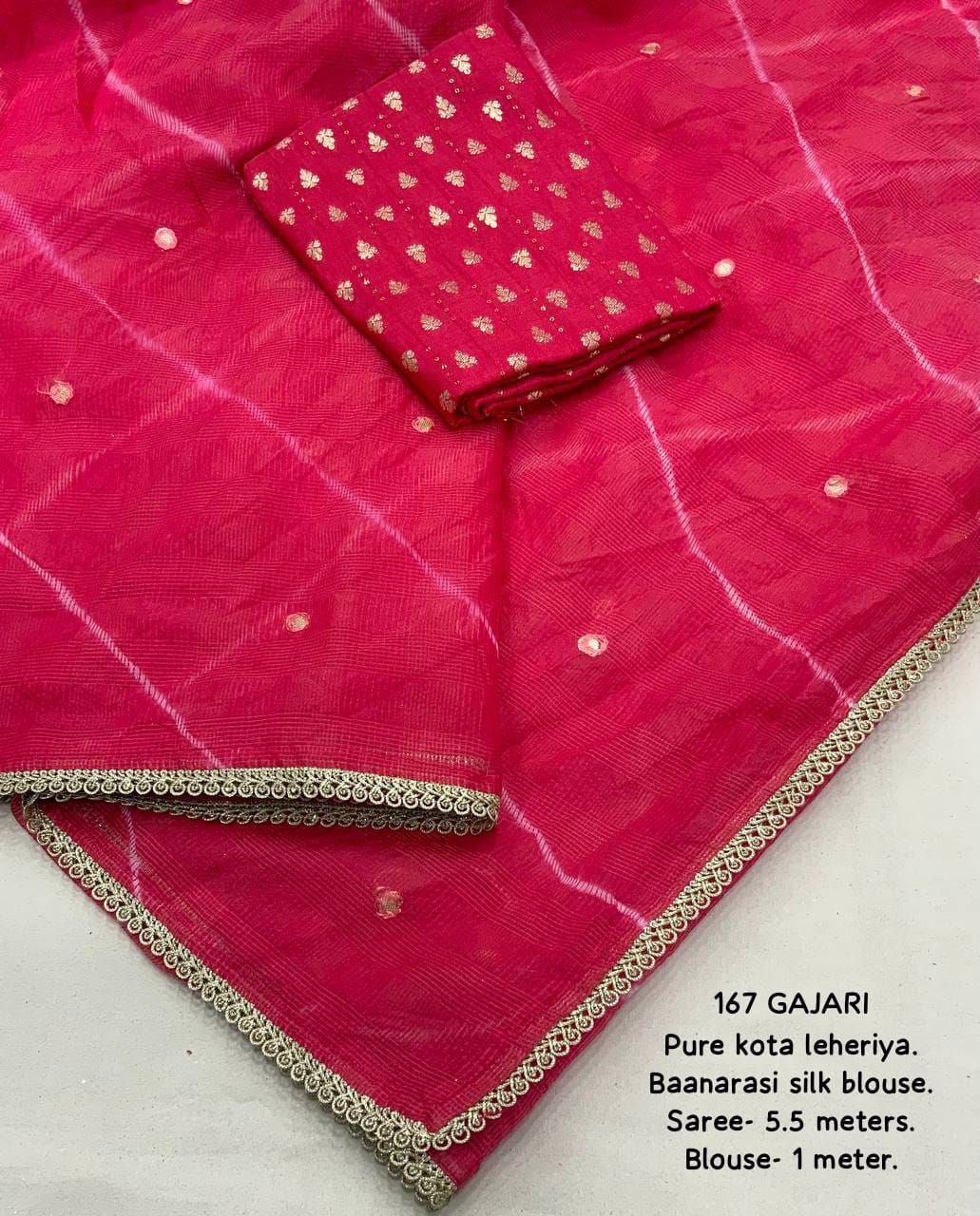 Pure Kota Leheriya Tie & Dye Saree with Aari Work and Banarasi Silk Blouse – Festive & Ethnic Wear | Swaraas.in
