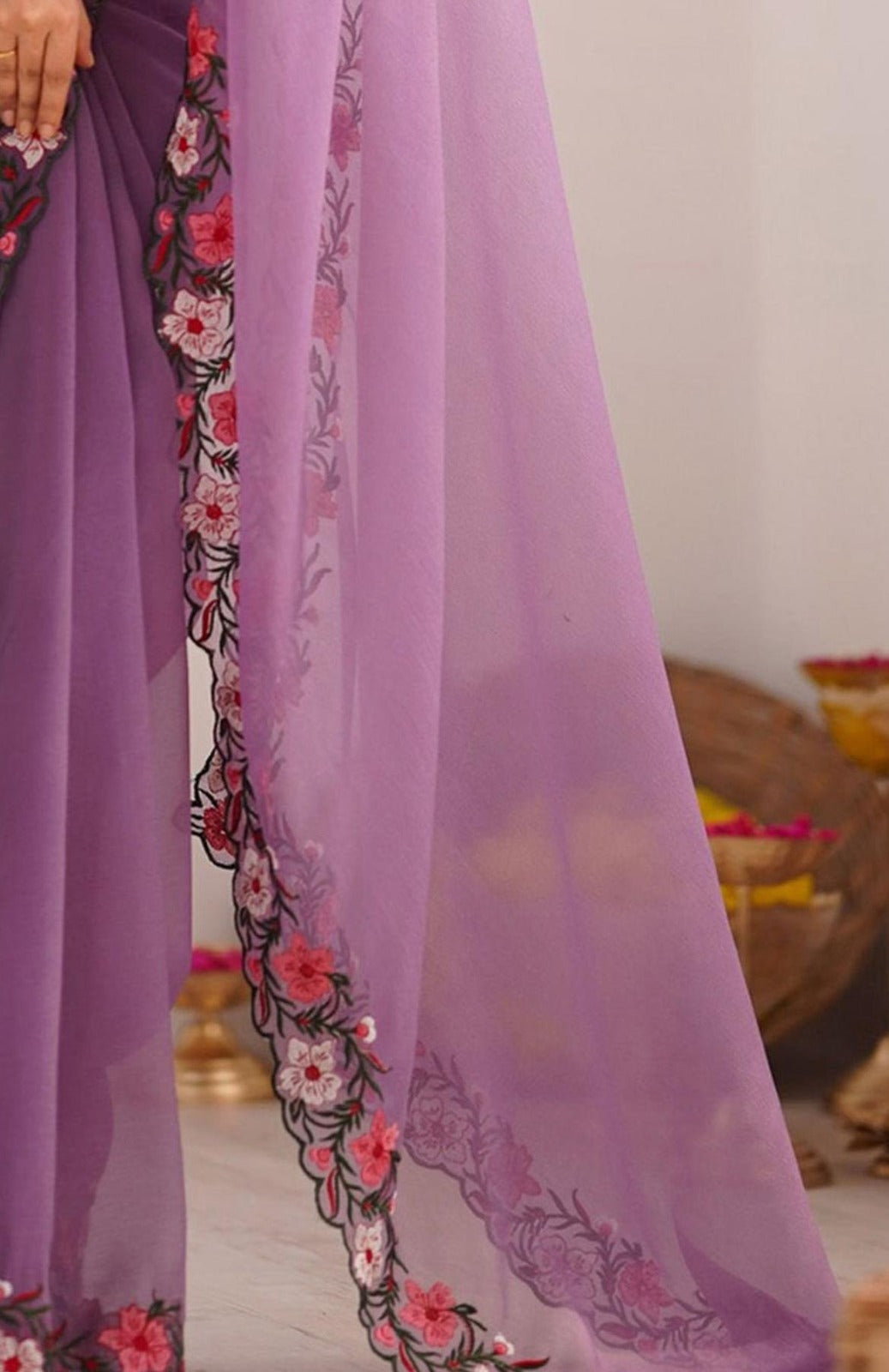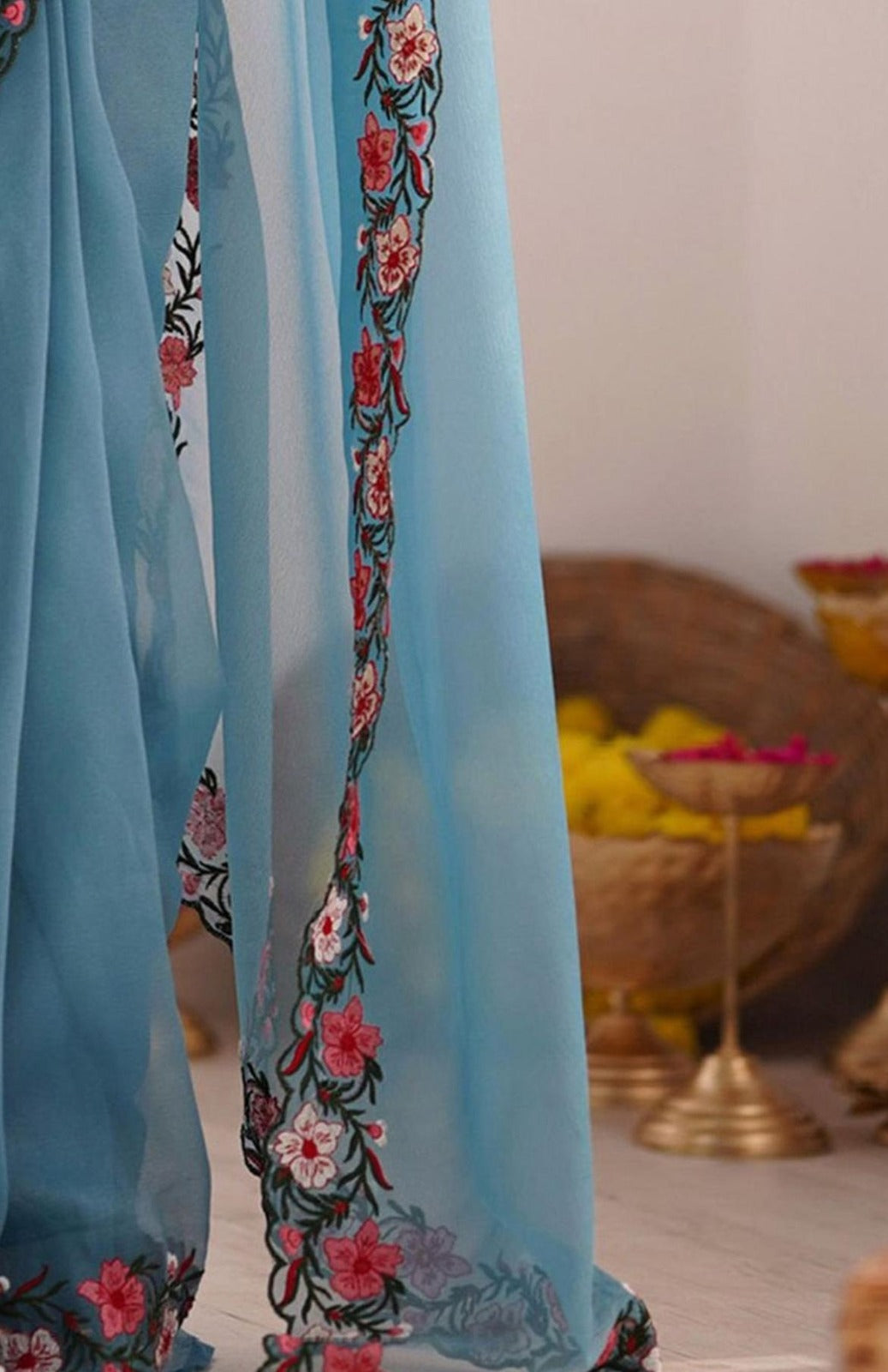 Pastel Faux Georgette Saree with Intricate Multi-Thread Embroidery & Heavy Work Blouse – Elegant Party Wear | Swaraas.in