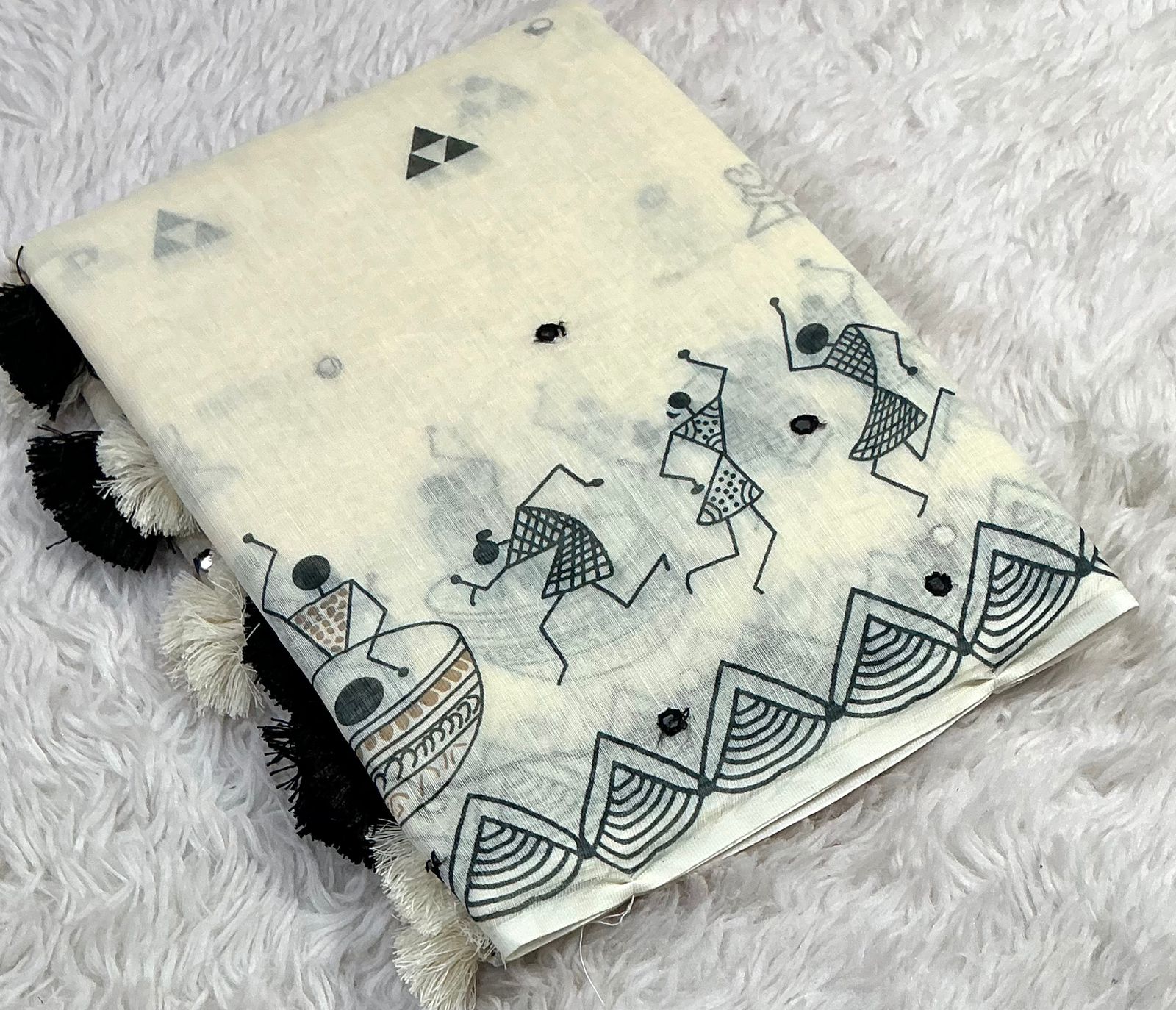 Elevate your ethnic wardrobe with this soft linen saree featuring exquisite Aari mirror work in a timeless beige shade. Crafted for all-day comfort, this lightweight linen saree blends traditional artistry with modern elegance, making it perfect for festive occasions, weddings, and celebrations.