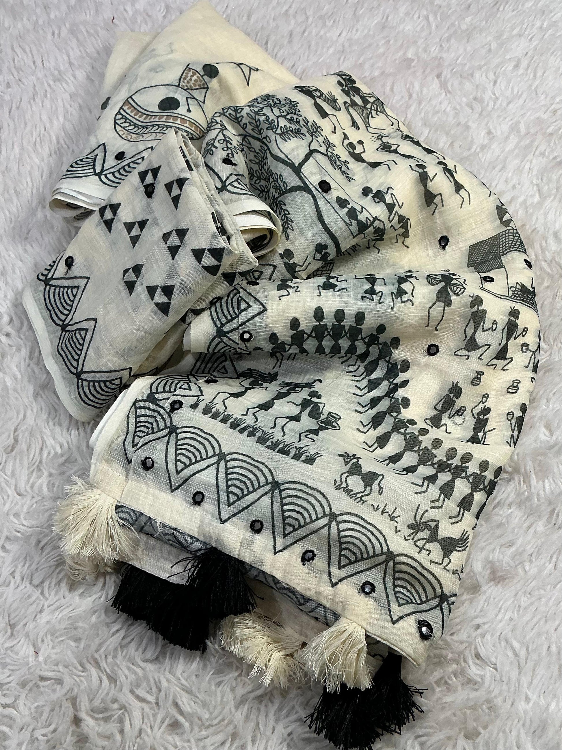 Stylish Pallu: Decorated with cotton tassels for a contemporary touch.