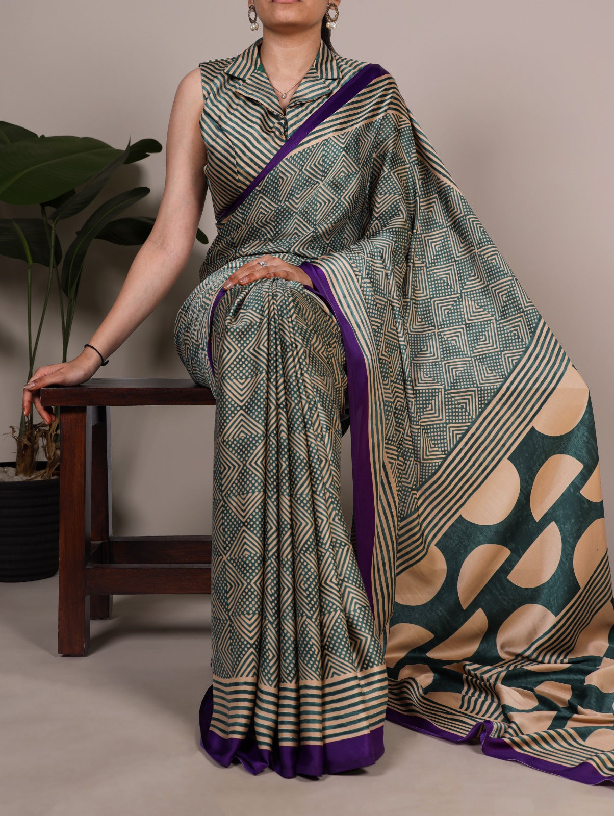 Crafted in soft dull silk with statement fancy prints, this saree blends classic charm with a modern touch đ¸