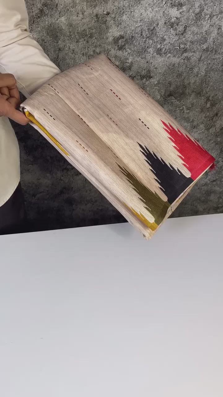 Celebrate tradition with a contemporary twist in this elegant Handloom Tussar Silk Saree, adorned with intricate temple digital prints and finished with delicate pallu tassels.