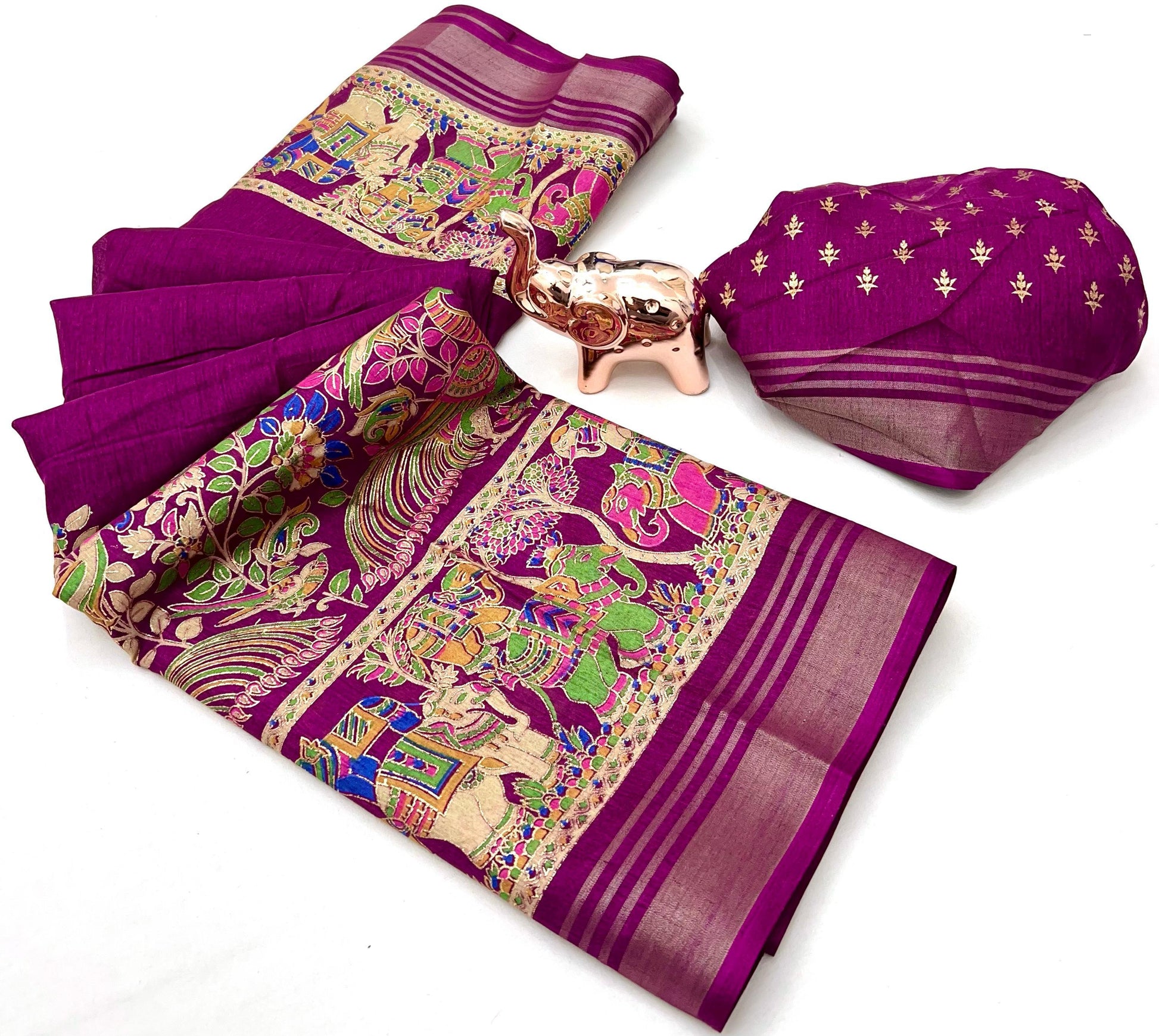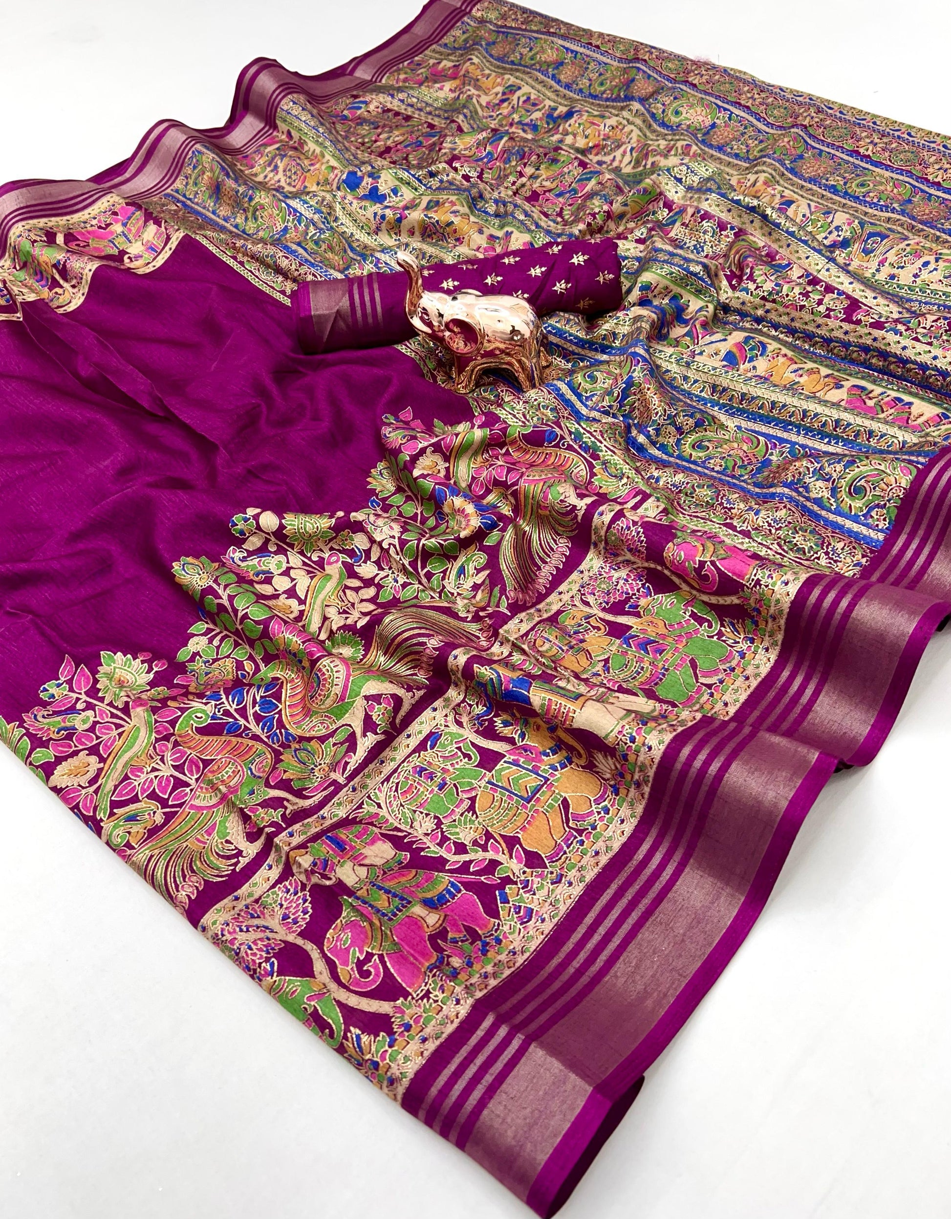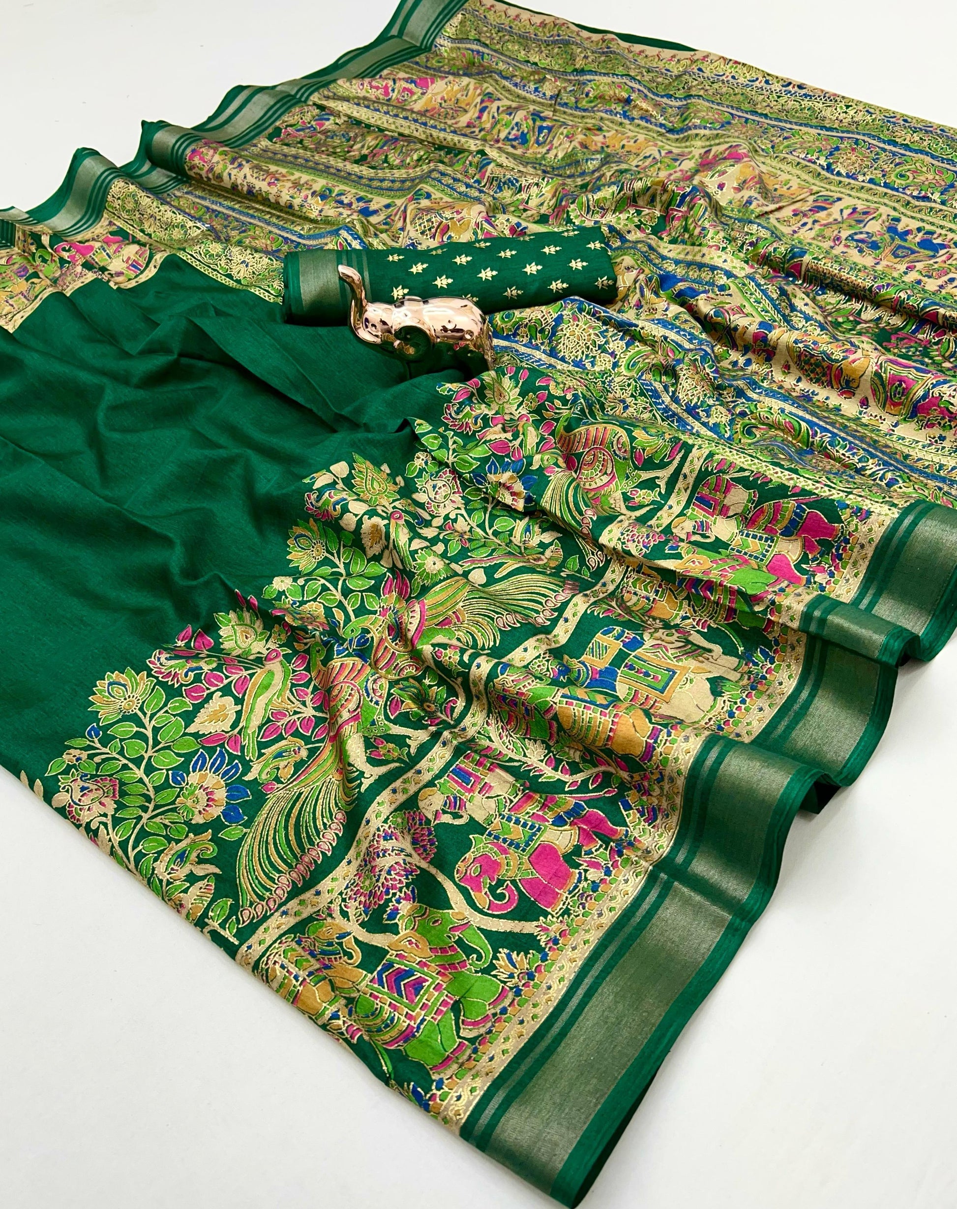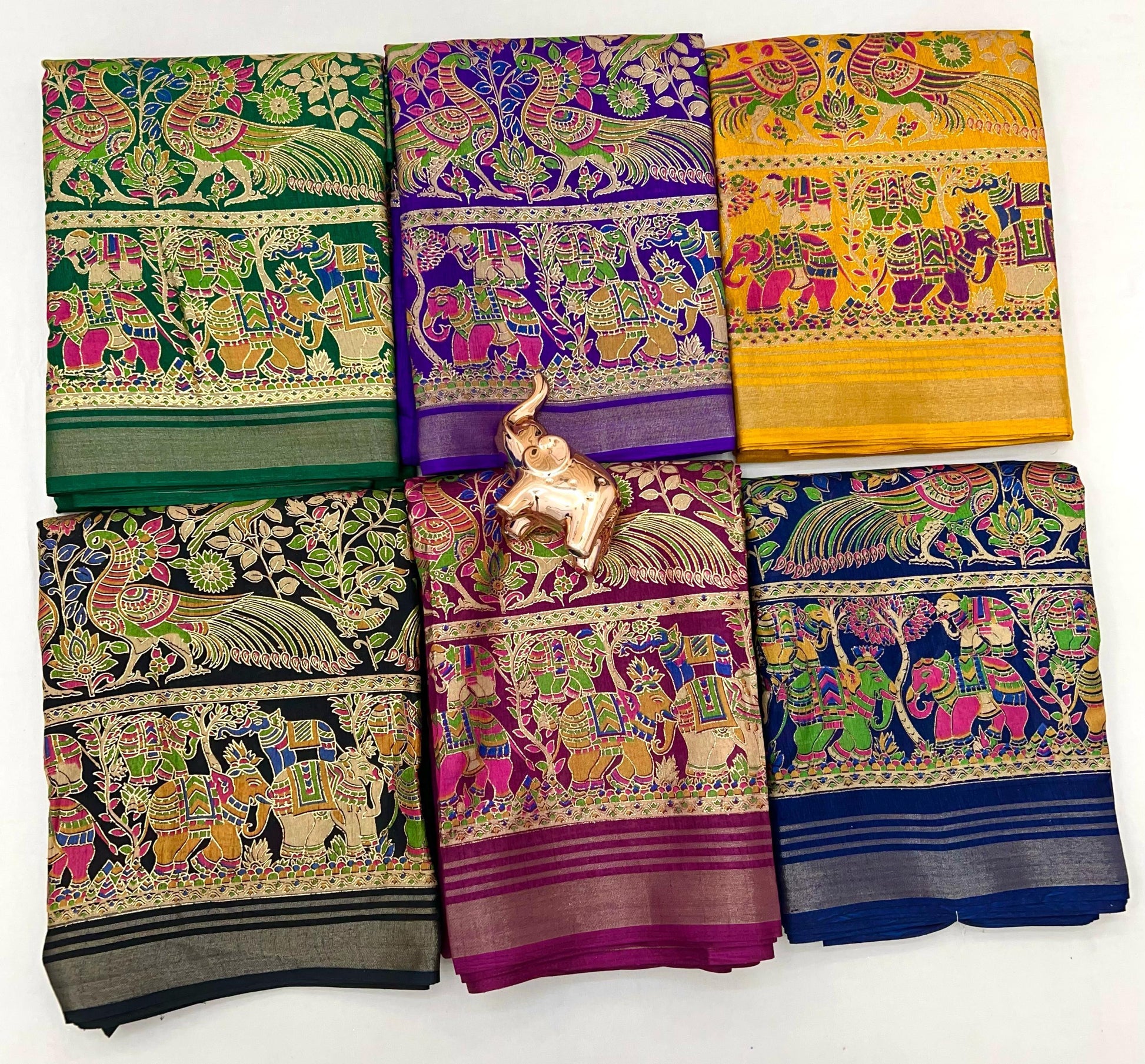 Accentuated with a traditional golden zari pattu border for a luxurious finish