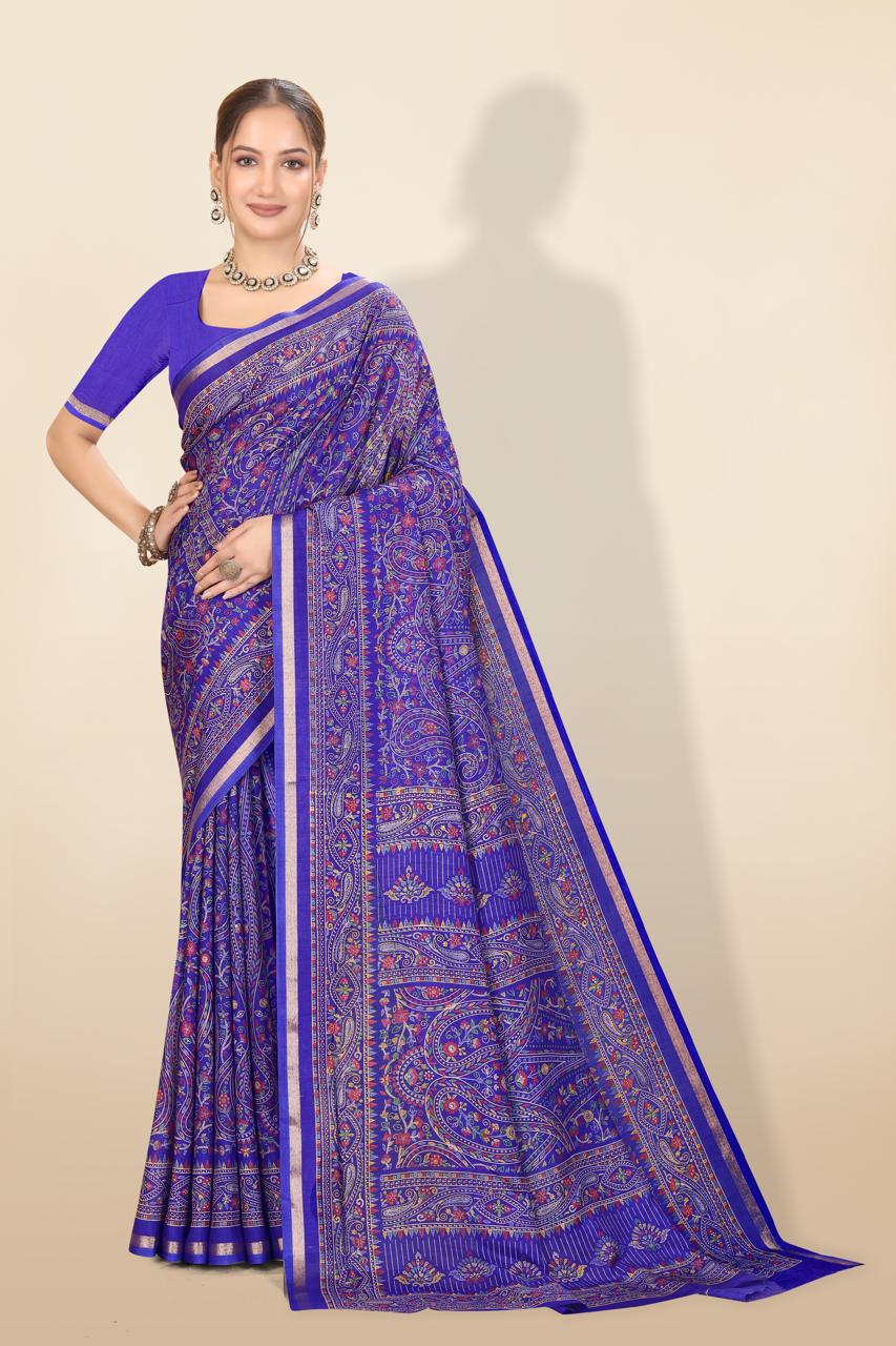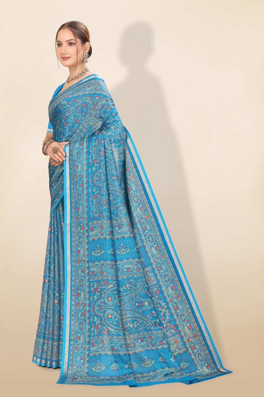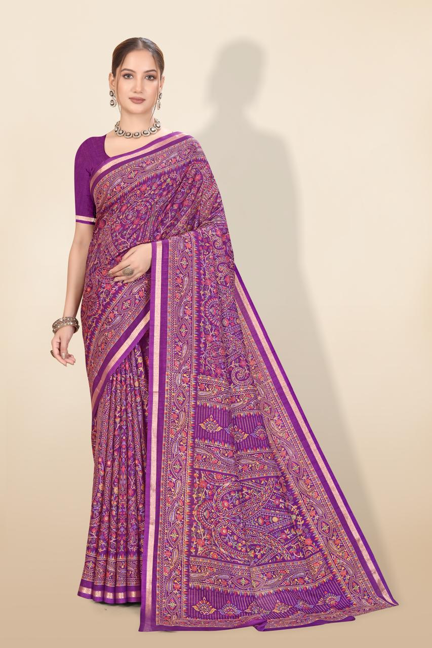 Pure Soft Tussar Silk Kashmiri Printed Saree with Rich Pallu & Golden Border | Elegant Traditional Wear
