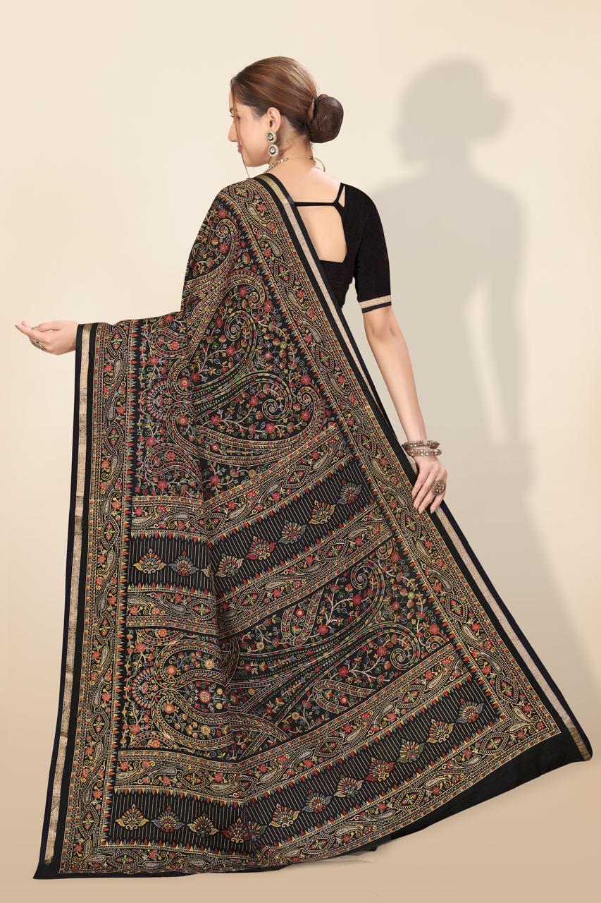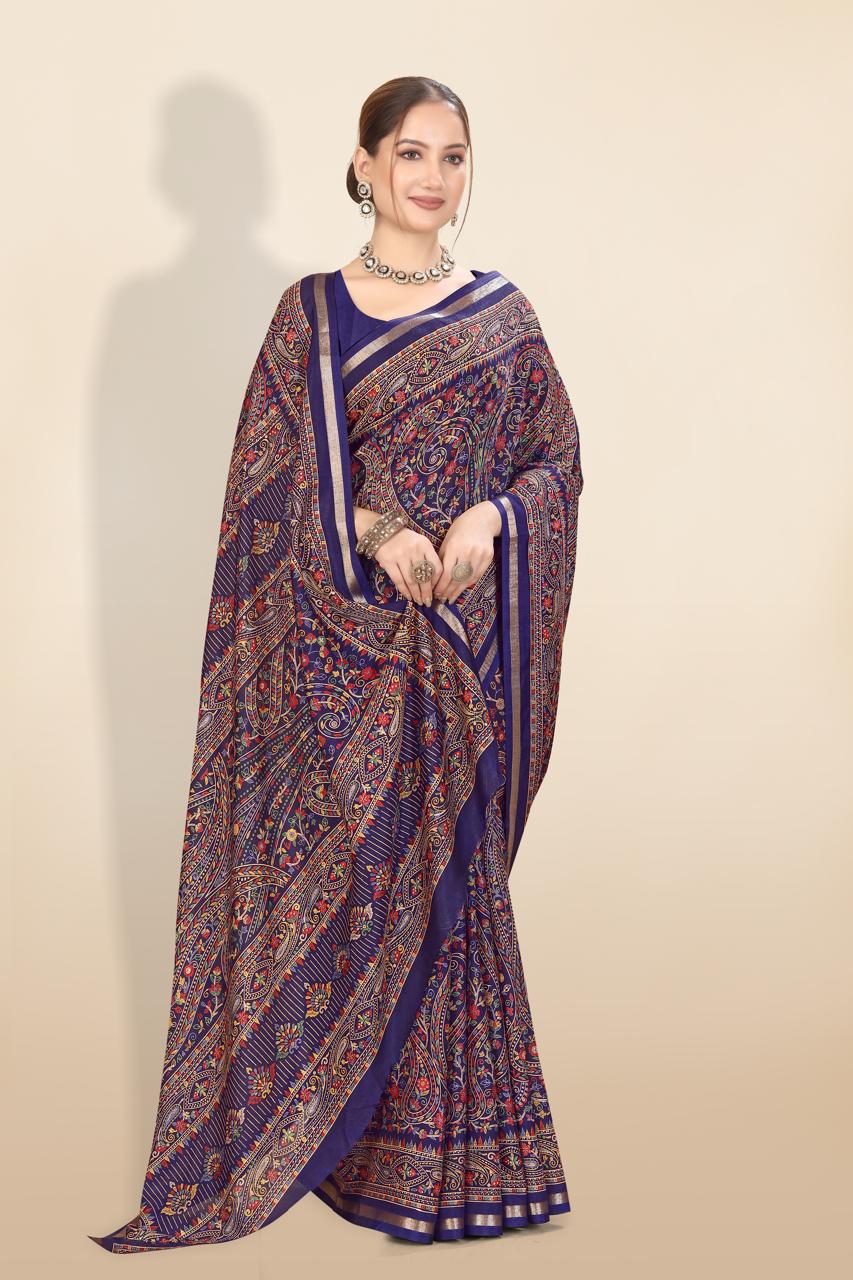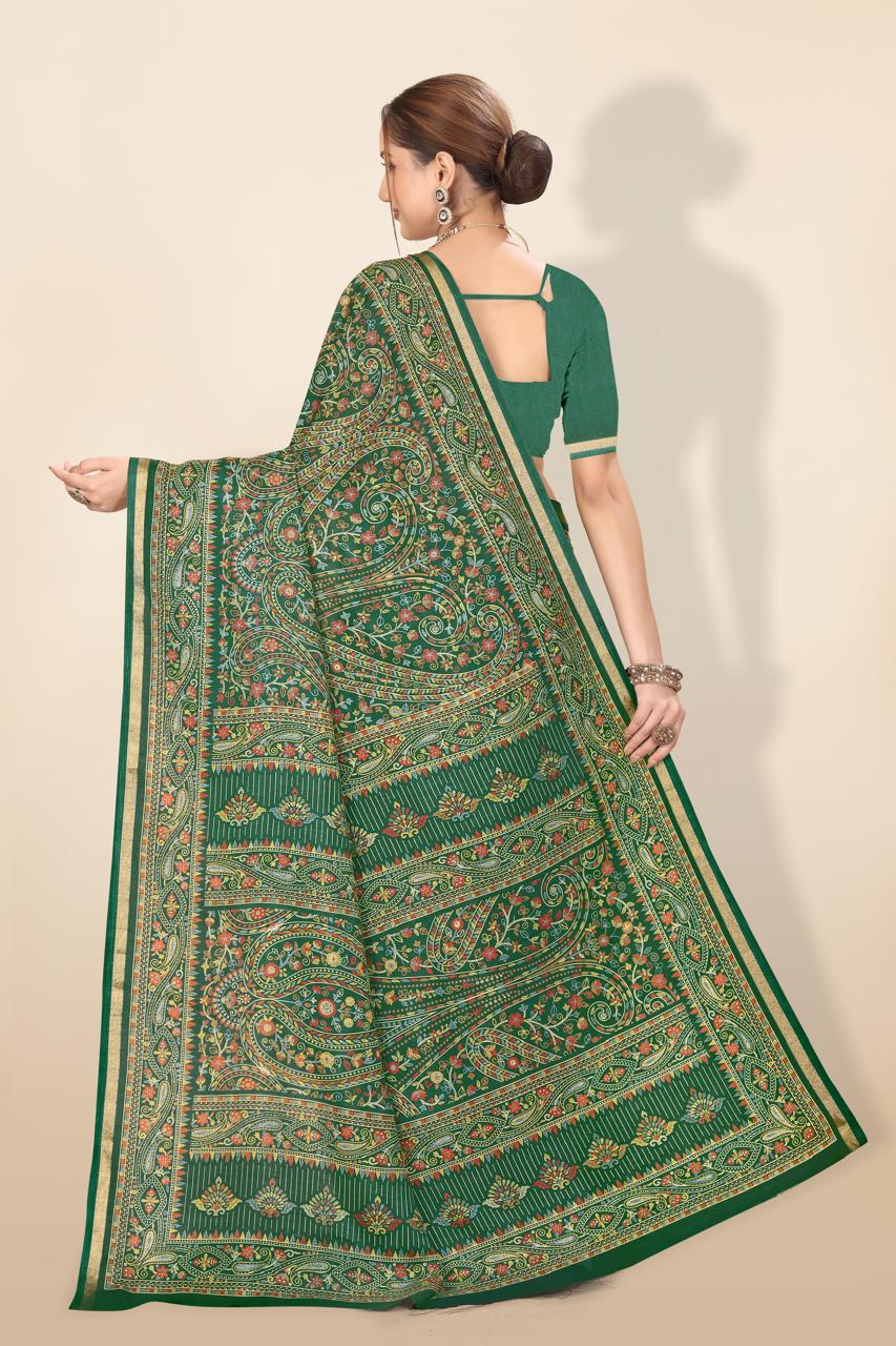 Pure Soft Tussar Silk Kashmiri Printed Saree with Rich Pallu & Golden Border | Elegant Traditional Wear