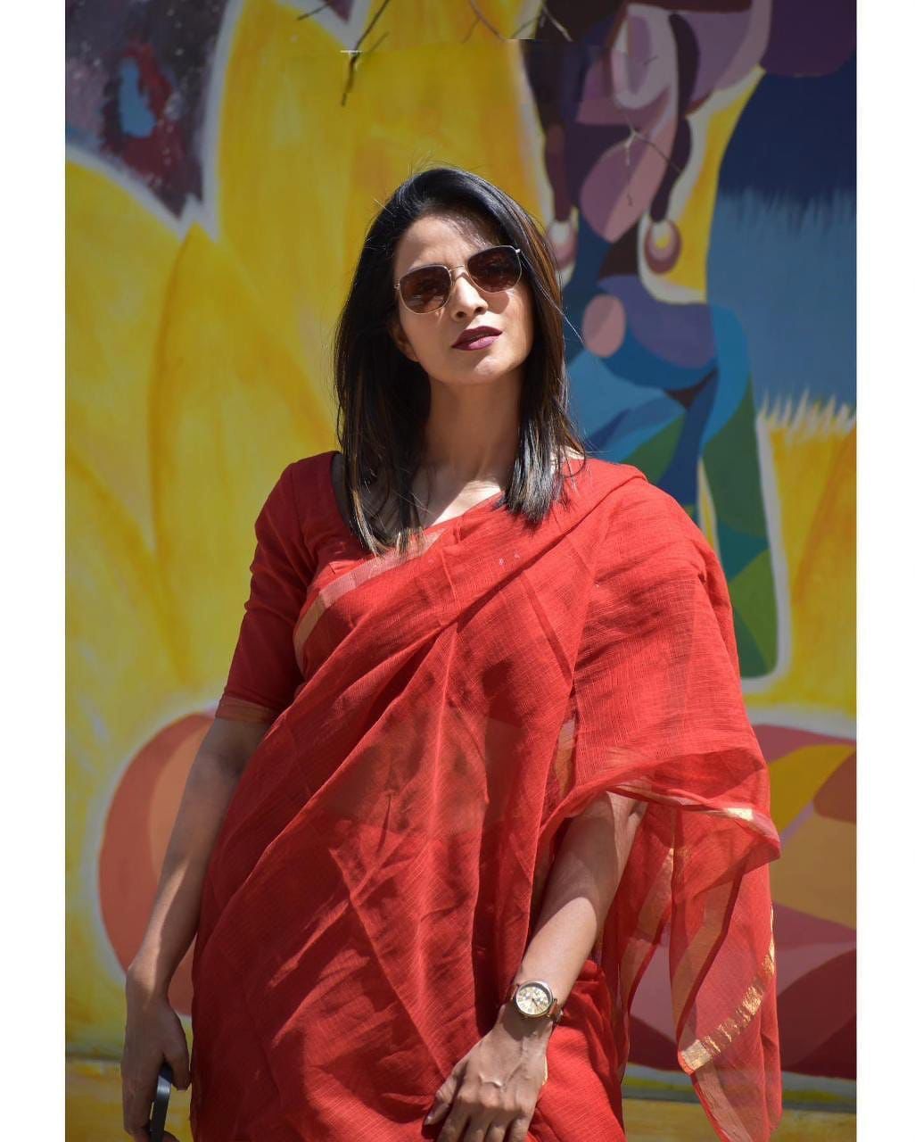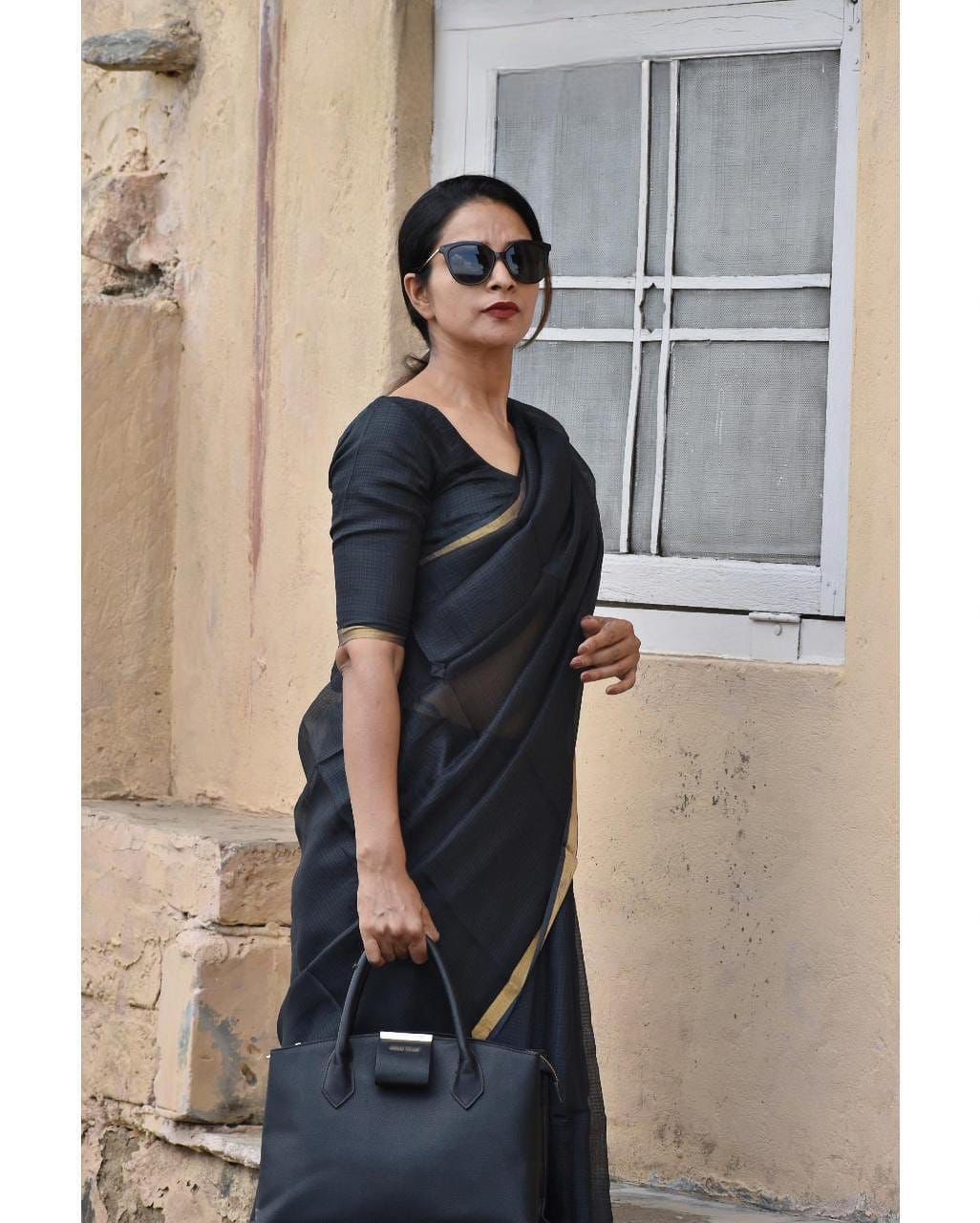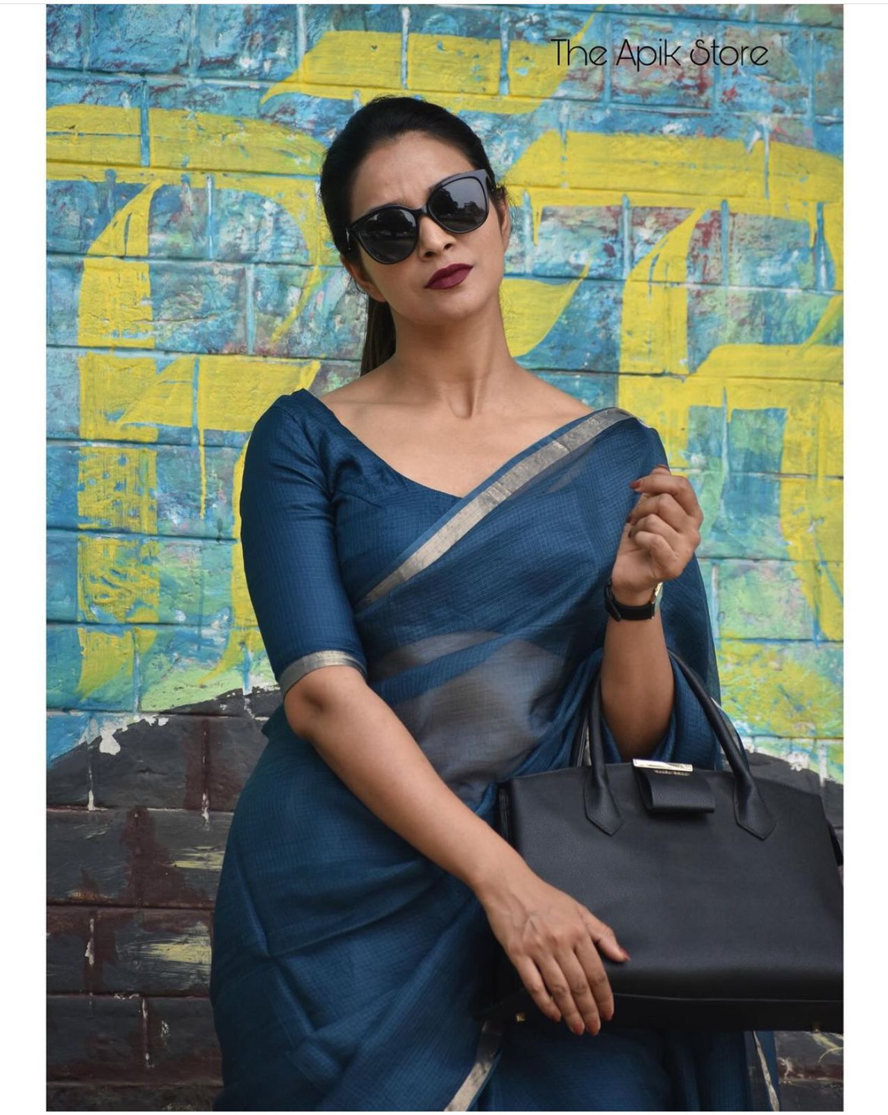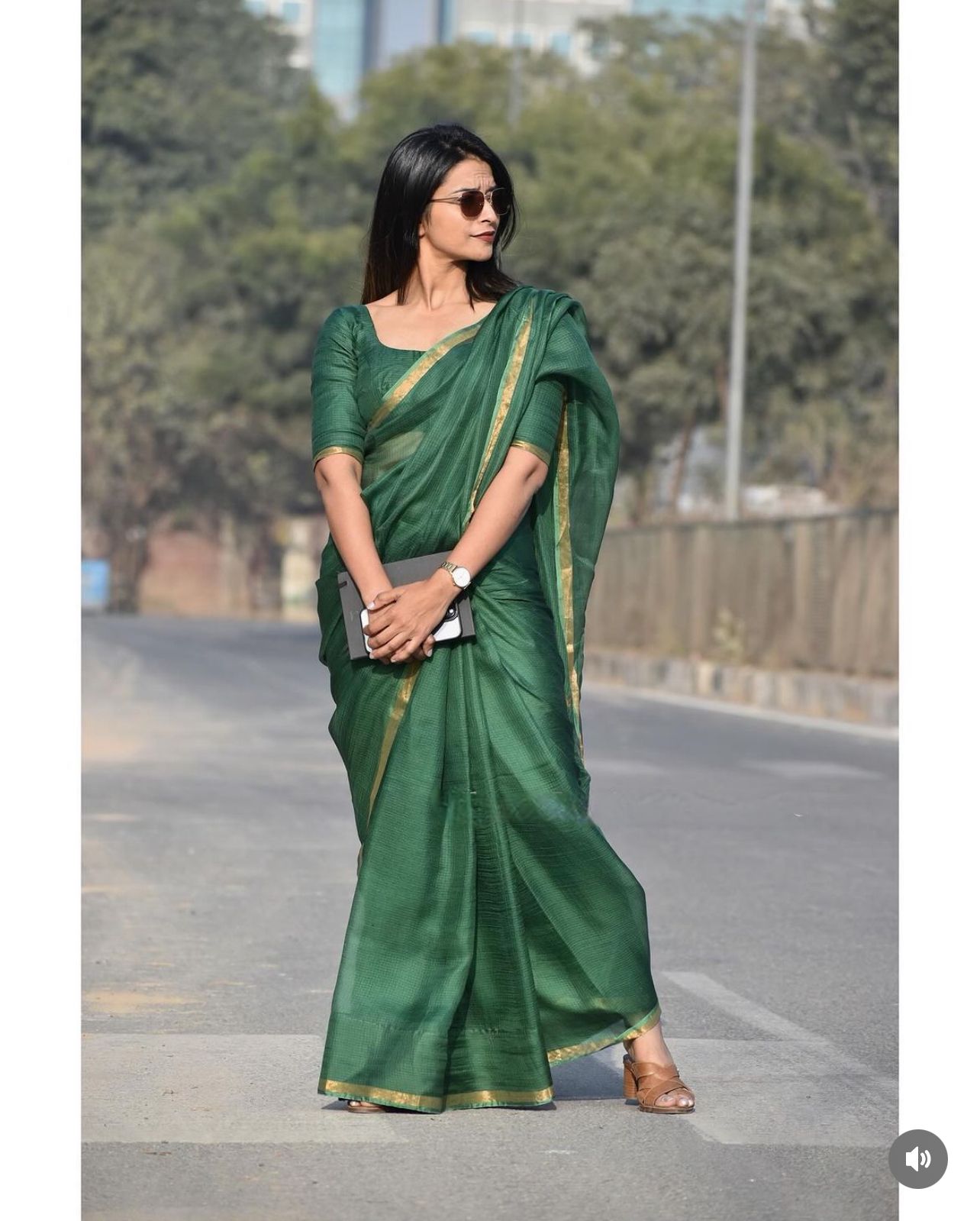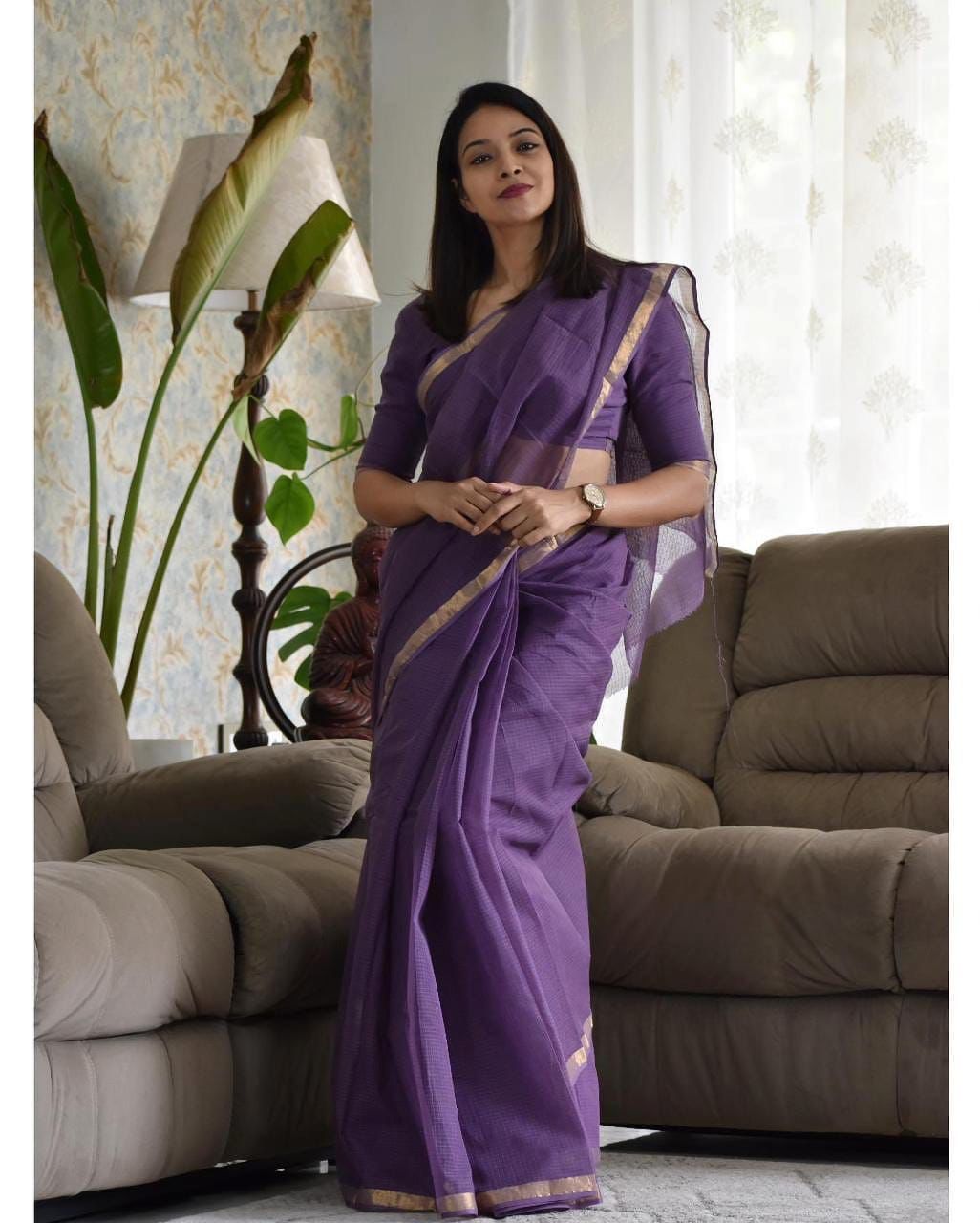 Celebrate the timeless grace of draping a saree — because you don’t need a reason to feel beautiful. Made from lightweight and breathable Kota Doriya silk, this saree features a classic gold zari border that adds just the right amount of festive charm.