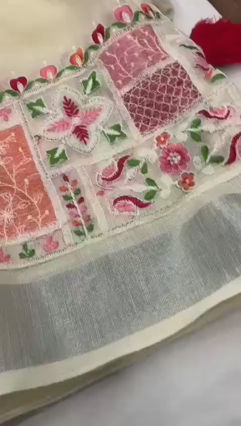 Work: Multicolour Embroidery with Silver Zari Pattu Border