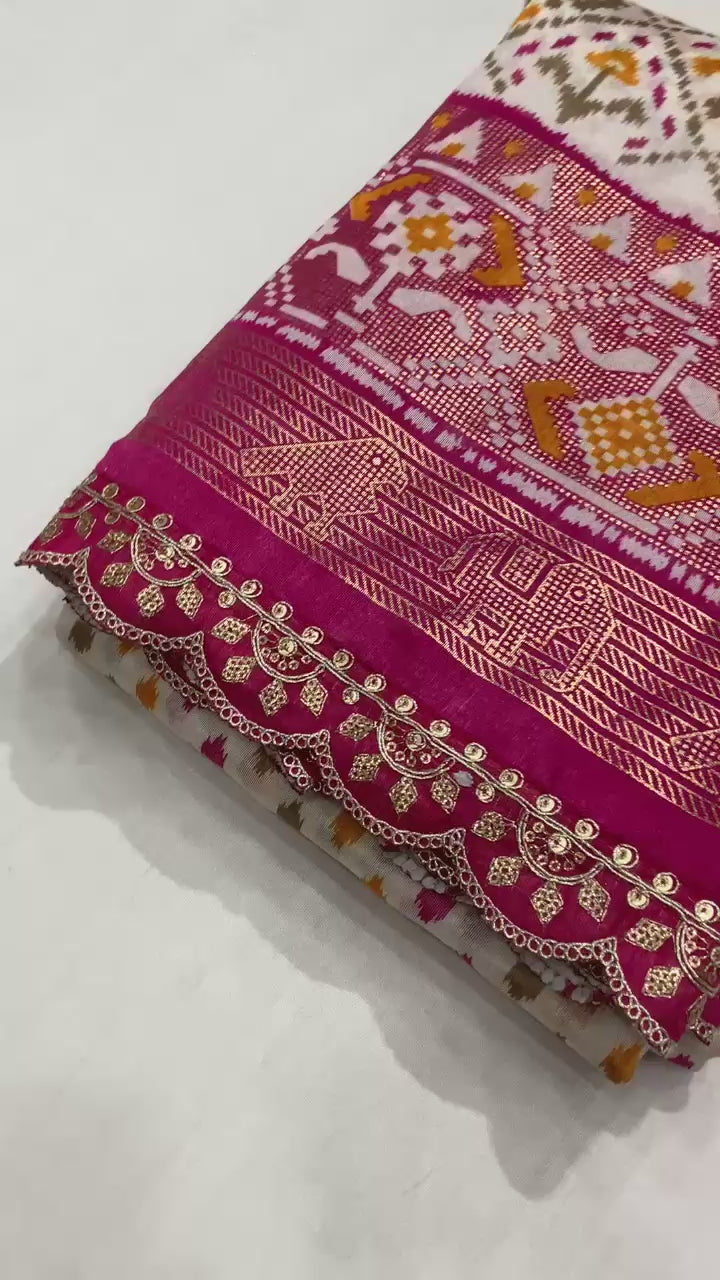 Scallop-style border with maggam and sequin work lace for a luxurious finish