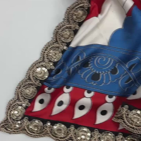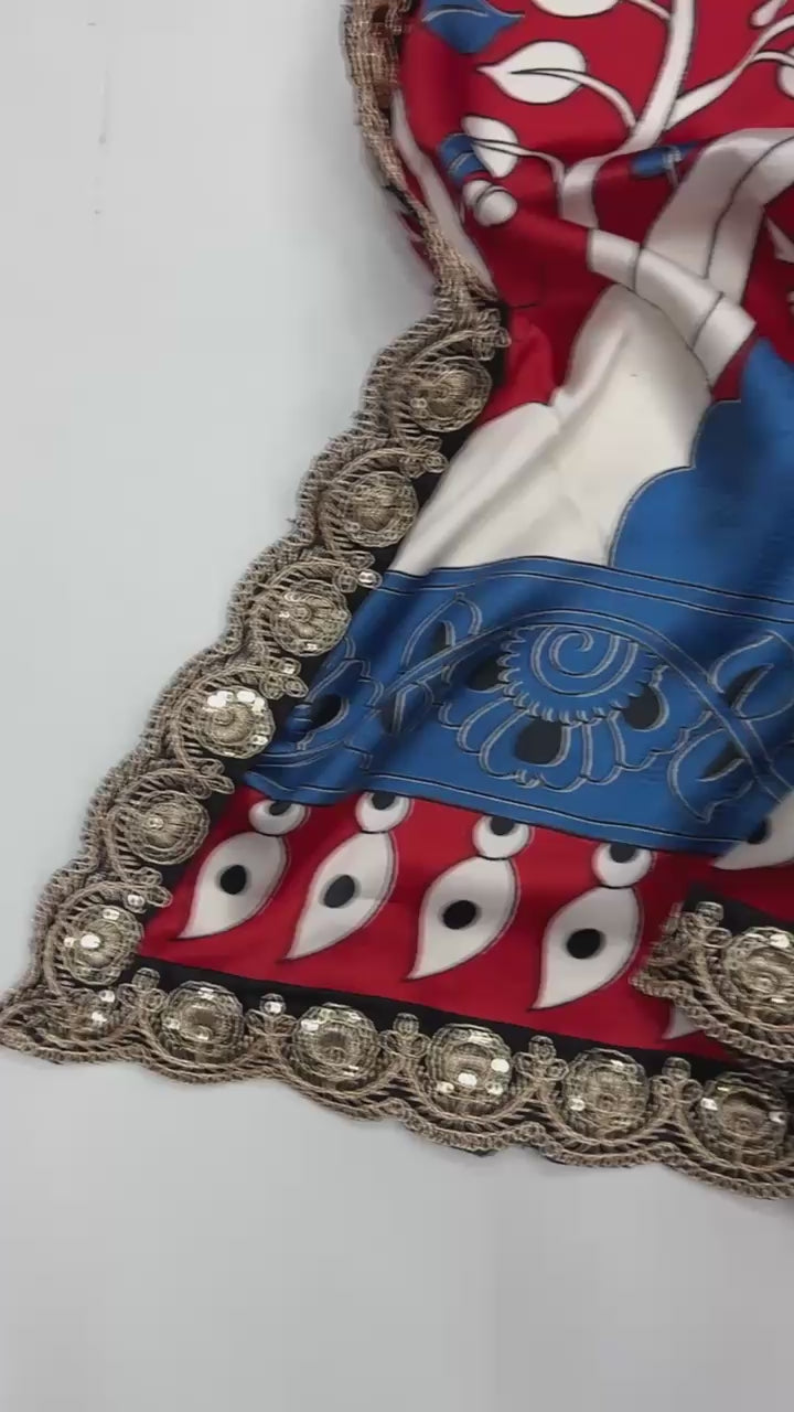 Pure Satin with Ajrak printed Sarees rich Pallu with heavy Designer Sequence Embrideory Lace