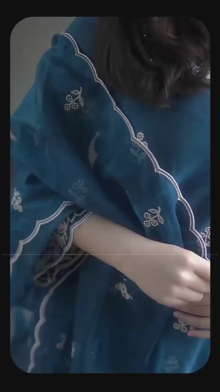 Chanderi Silk Kurti Palazzo Set with Cotton Thread Embroidery & Dupatta