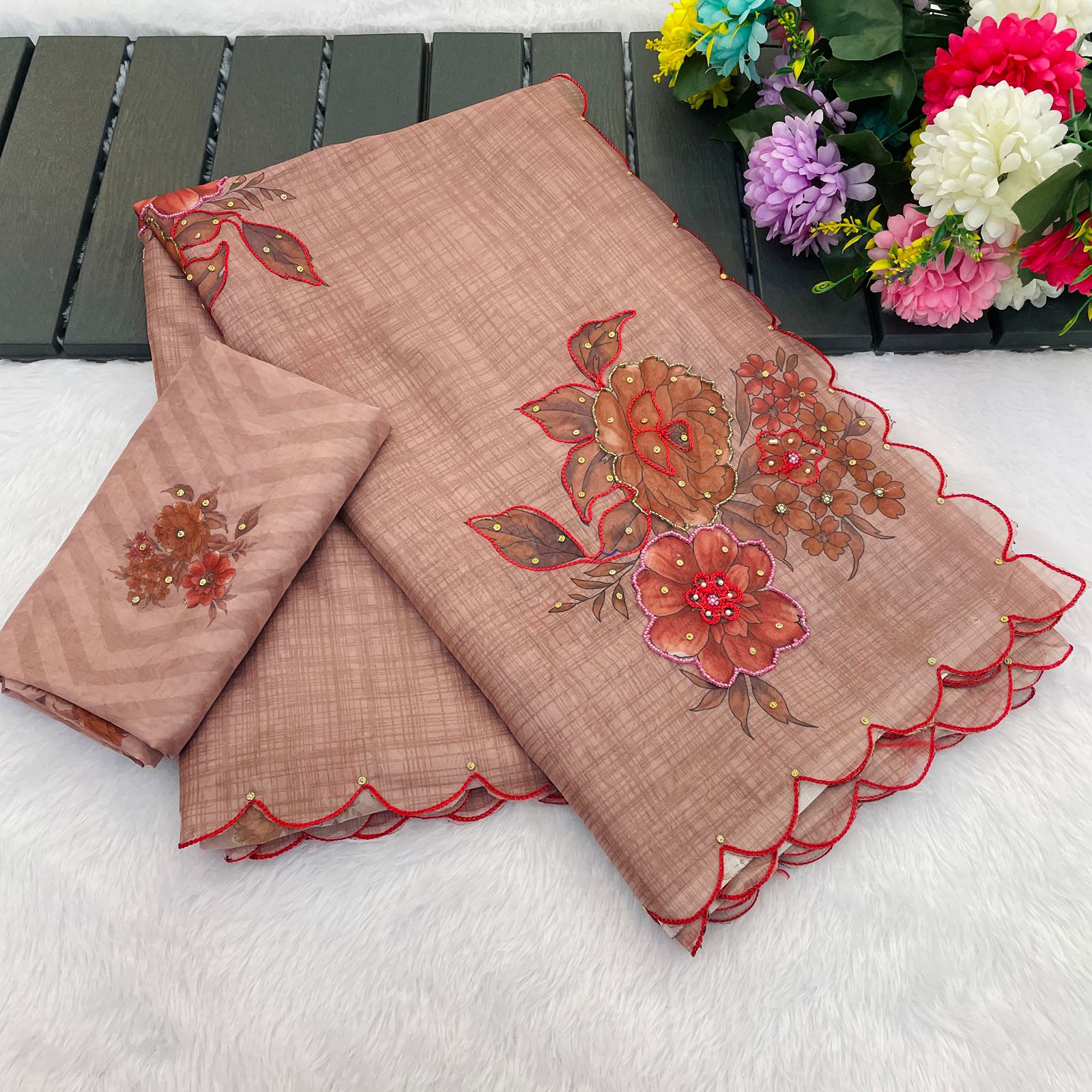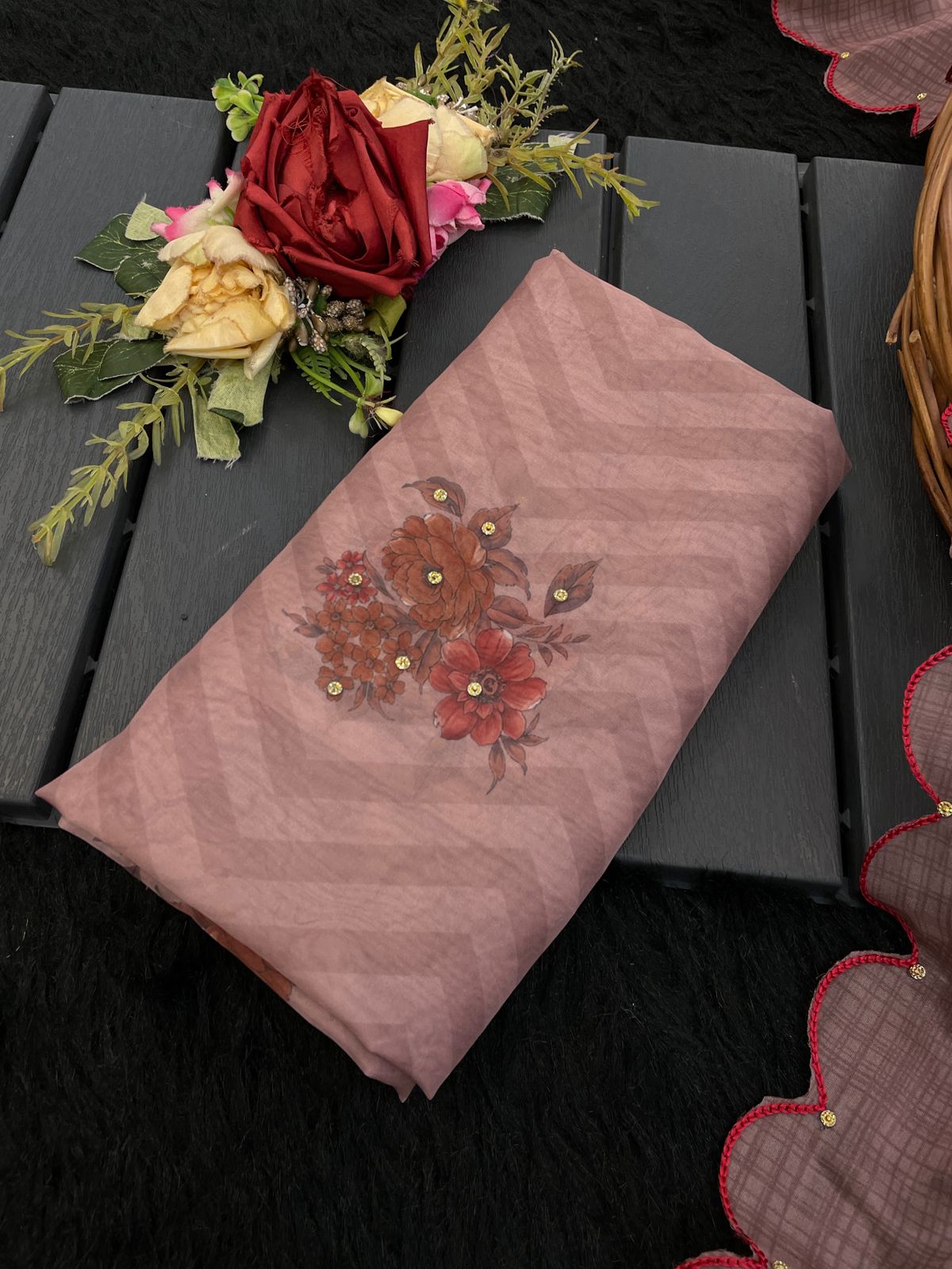 Rukshana Soft Tabby Organza Saree with Digital Print & Khatli Embroidery – Designer Organza Blouse
