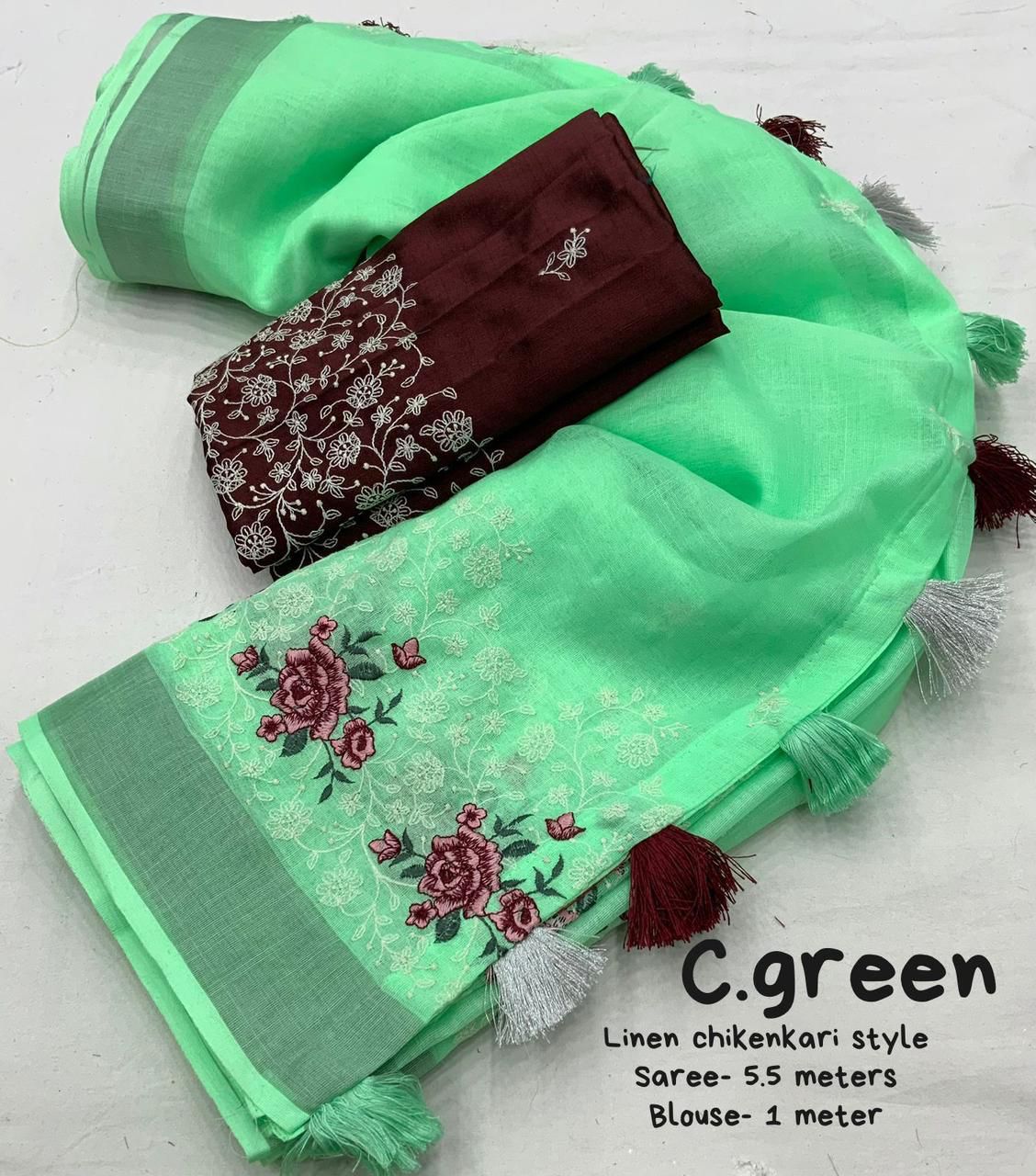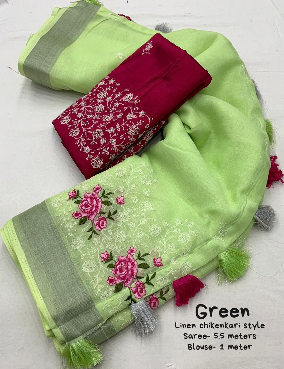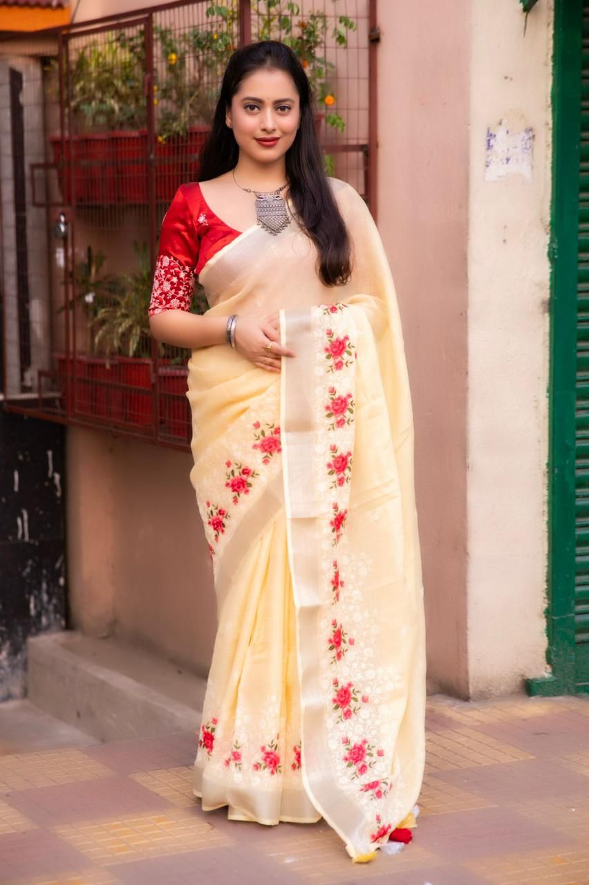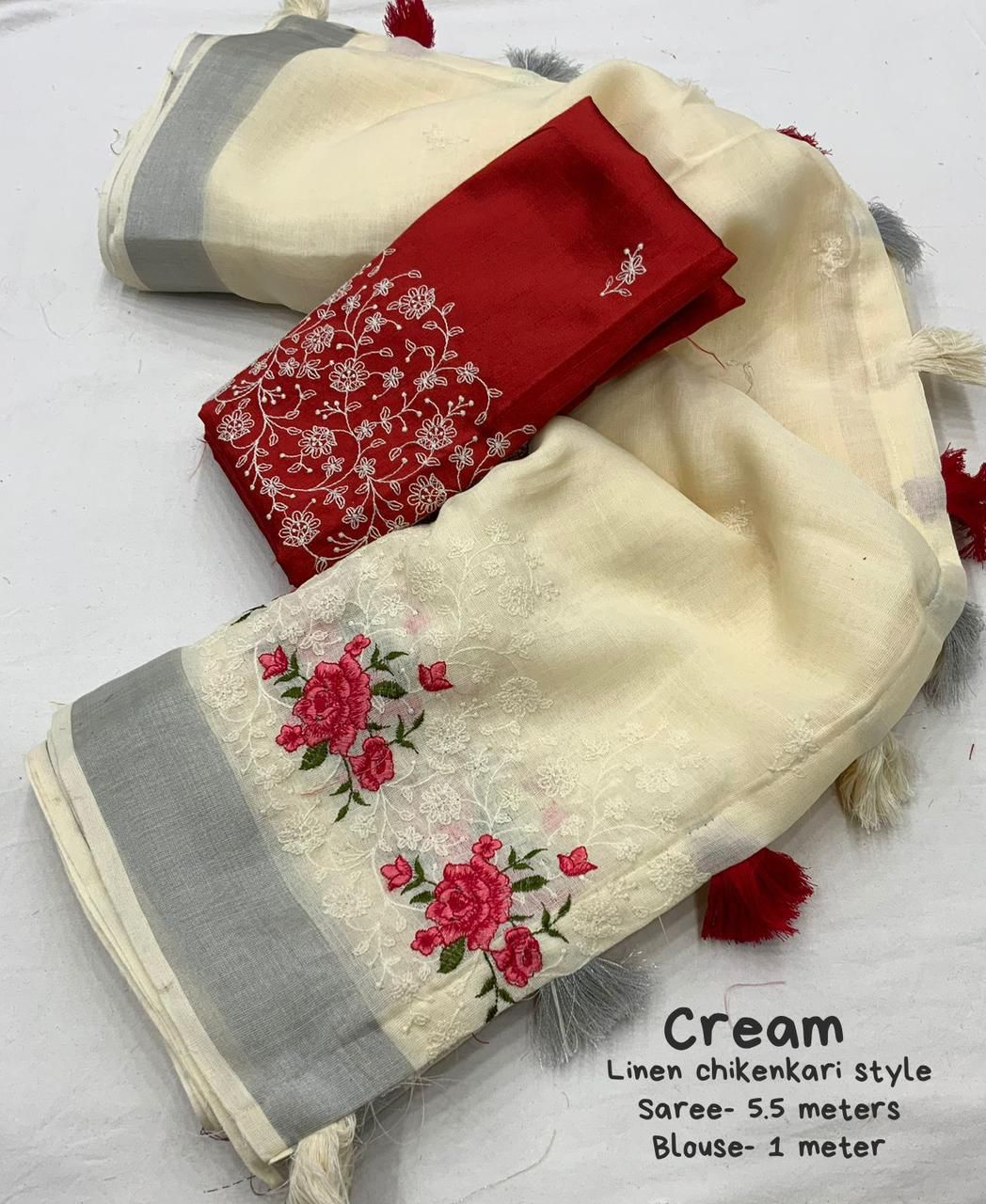 Pure Linen Saree with Elegant Silver Zari Pattu Border & Matching Blouse – Handloom-Inspired Ethnic Wear | Swaraas.in