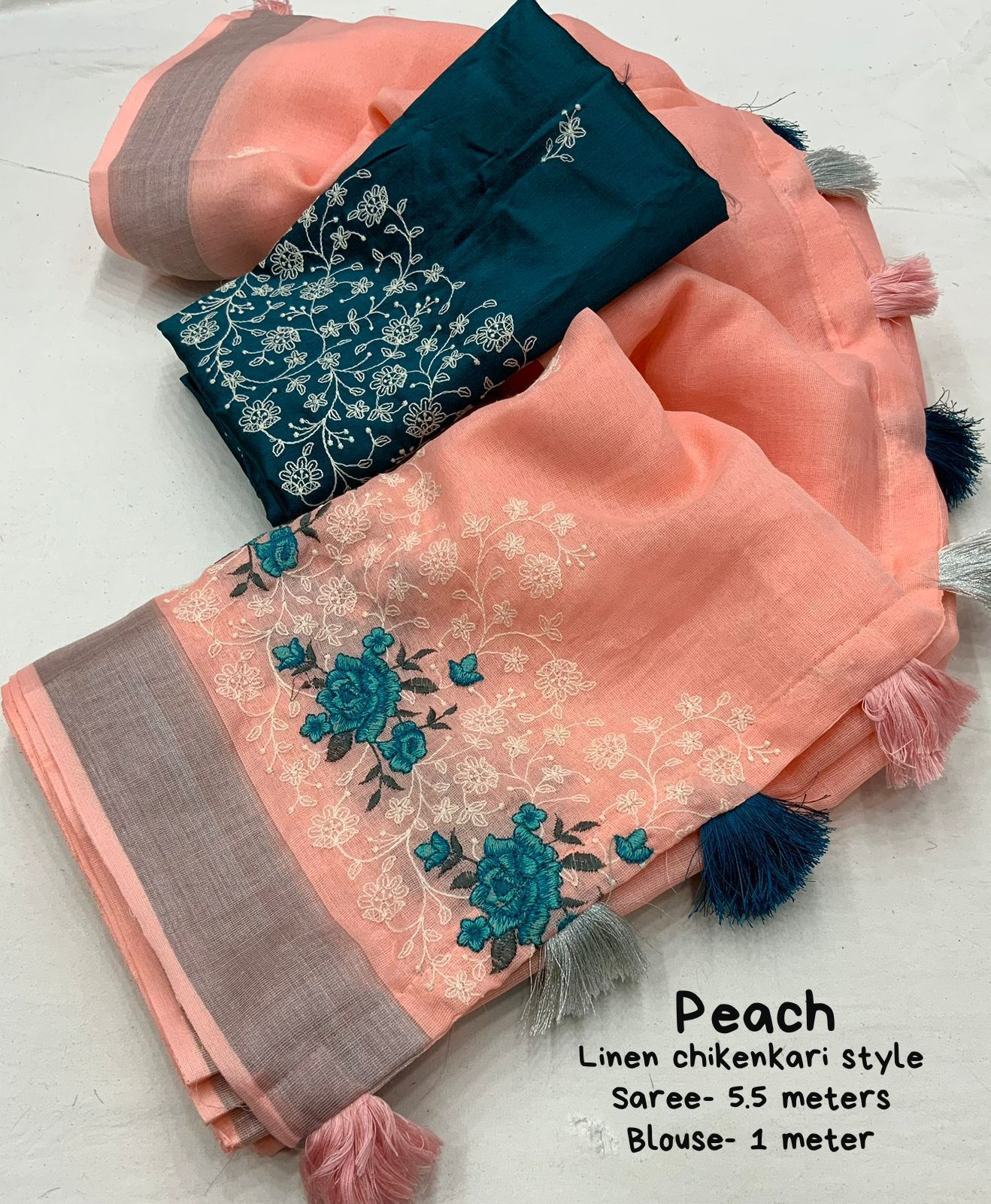 Experience comfort and sophistication with this pure linen saree, designed for effortless grace and breathability. Featuring a finely woven silver zari pattu border, this saree strikes the perfect balance between understated elegance and festive charm.