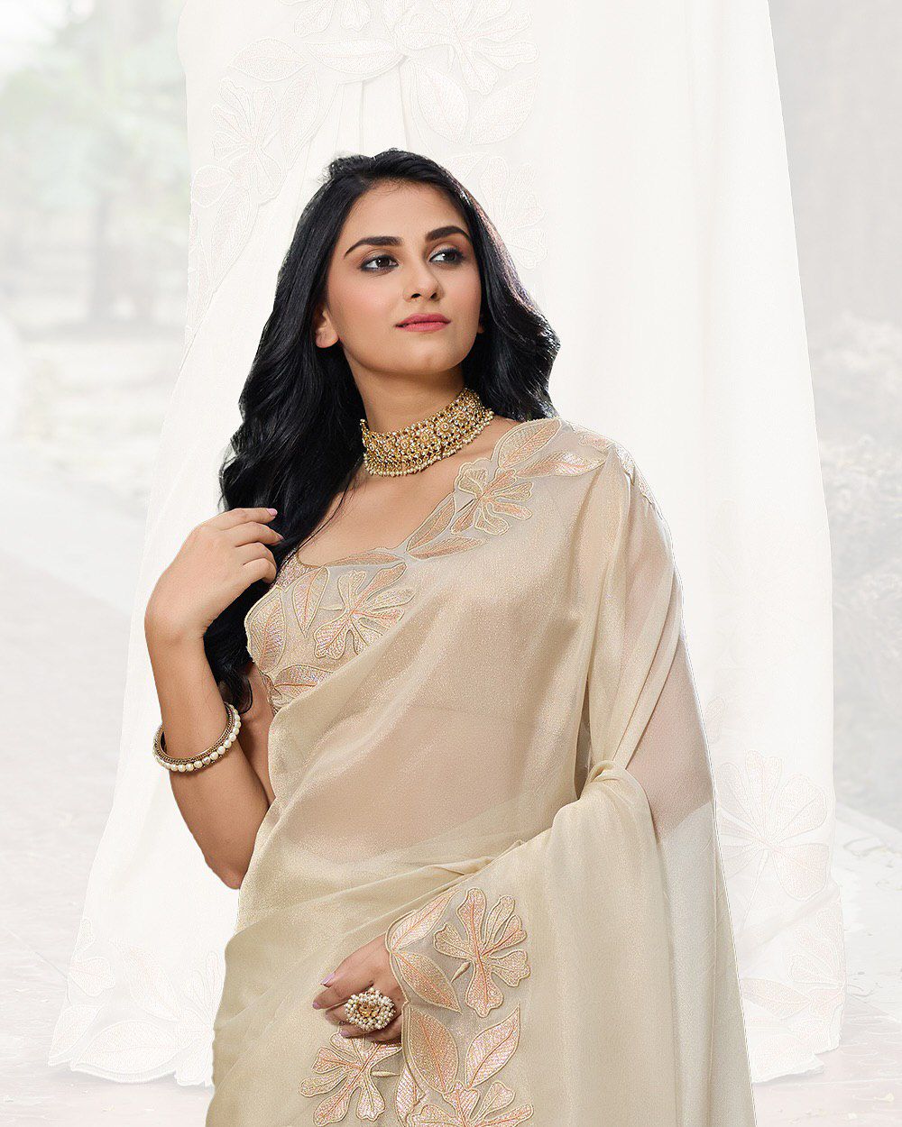 Unveil timeless elegance with the Sindhur Saree, exquisitely crafted from pure bright organza silk. This luxurious drape features intricate 3mm sequin embroidery that glistens with every move, complemented by a designer arco cut border that adds a touch of couture finesse.