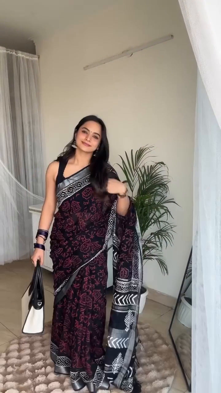 Elegant Digital Print Linen Saree with Silver Zari Border & Blouse – 6.3 Mtr (Single Colour Catalog)