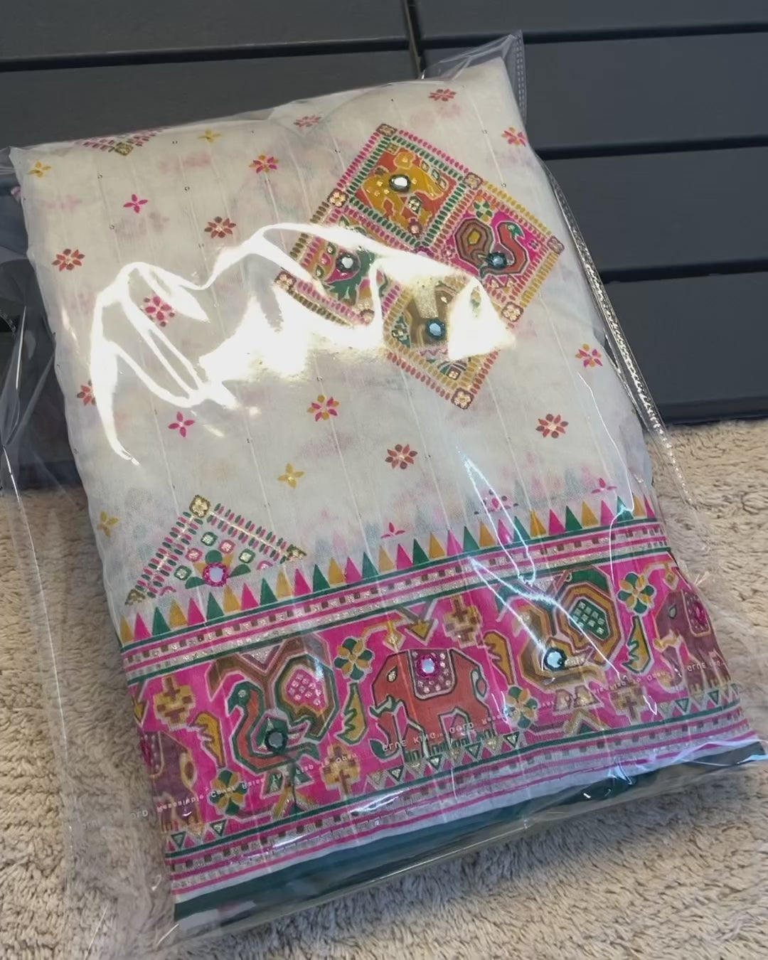 Design: Exclusive Patola print with woven Lagdi Patta and mirror detailing