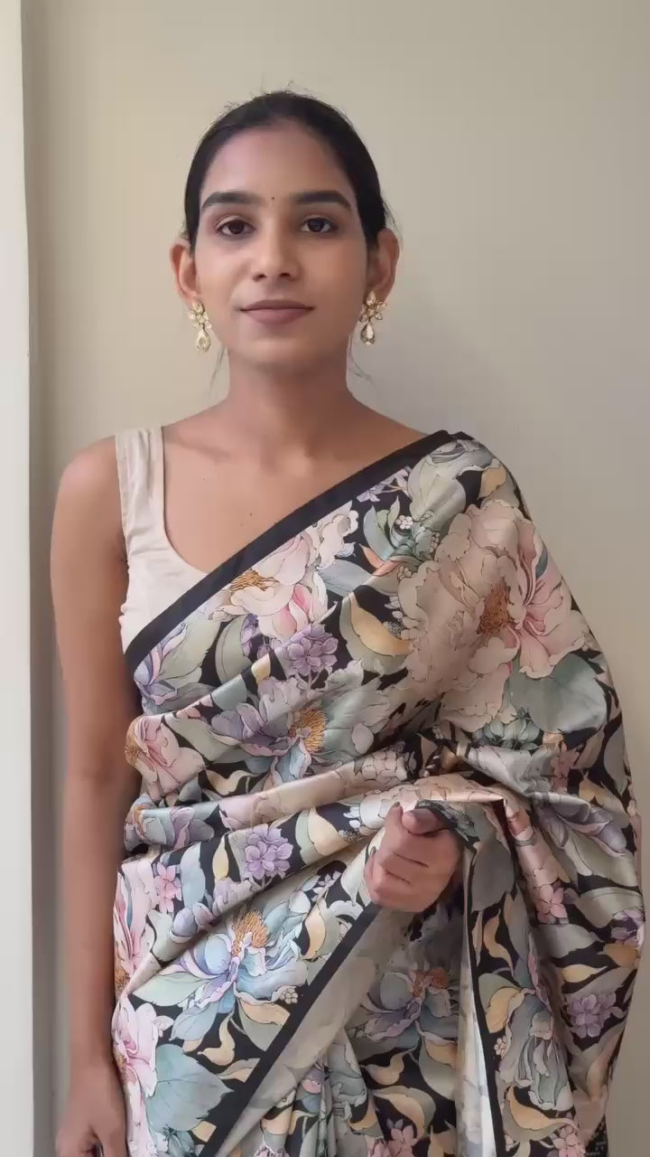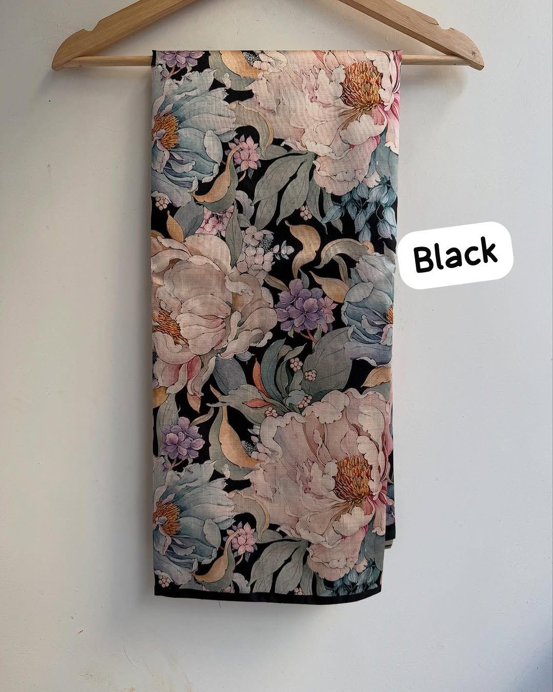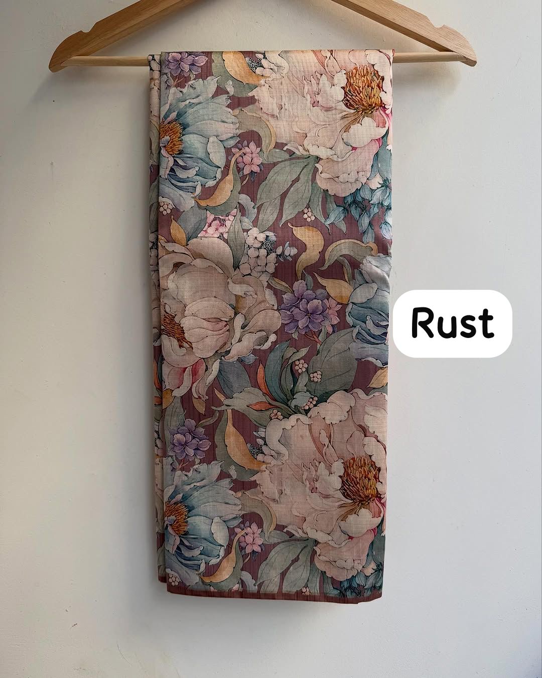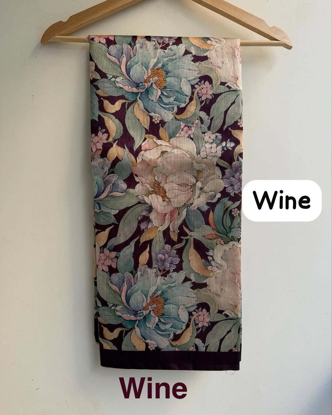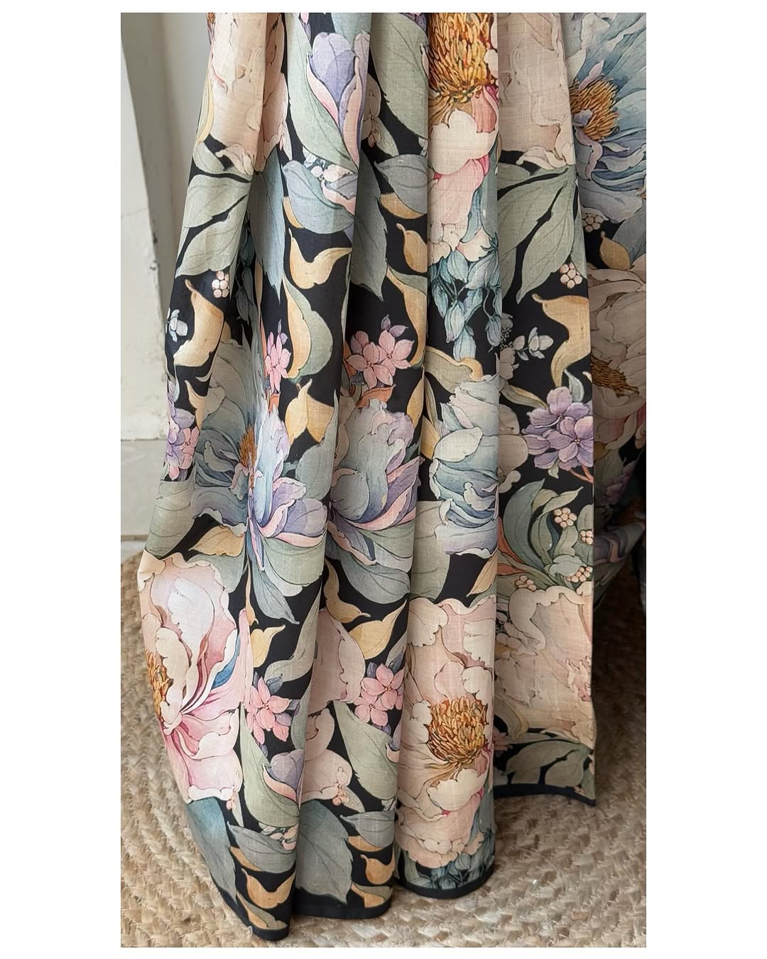 Soft Tussar Silk Saree with 3D Floral Print & Tassel Pallu – Swaraas.in