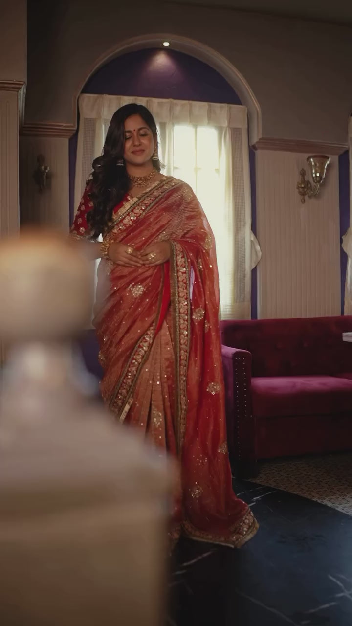 Banarasi Crush Saree with Hari Thread Embroidery Butta, Sequin Detailing & Zari Dori Lace Border