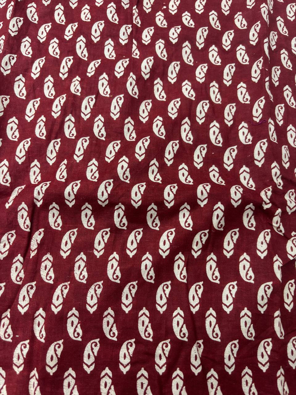 Color: Maroon base with off-white paisley motifs