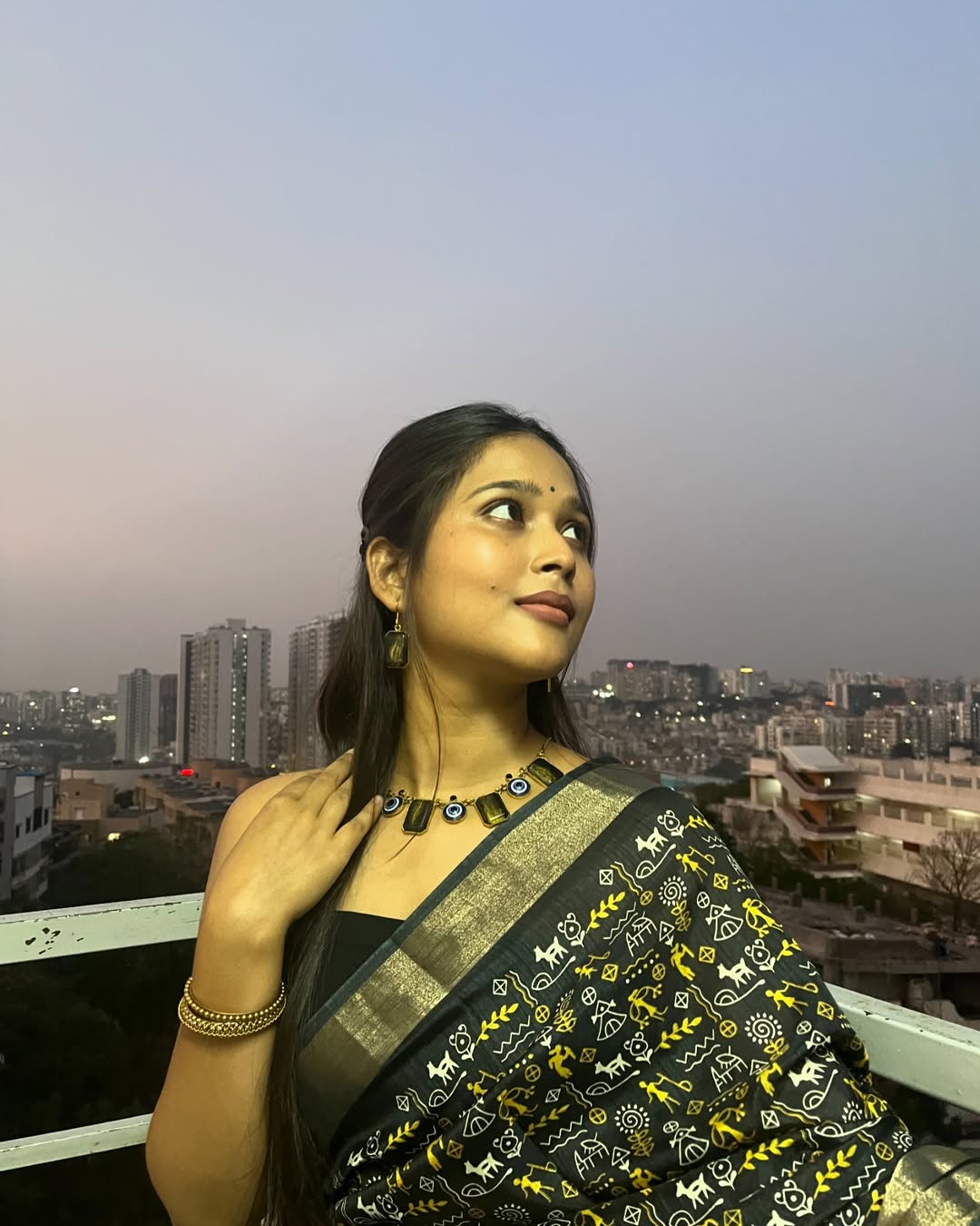 Intricately designed Kalamkari print combined with traditional Worli motifs